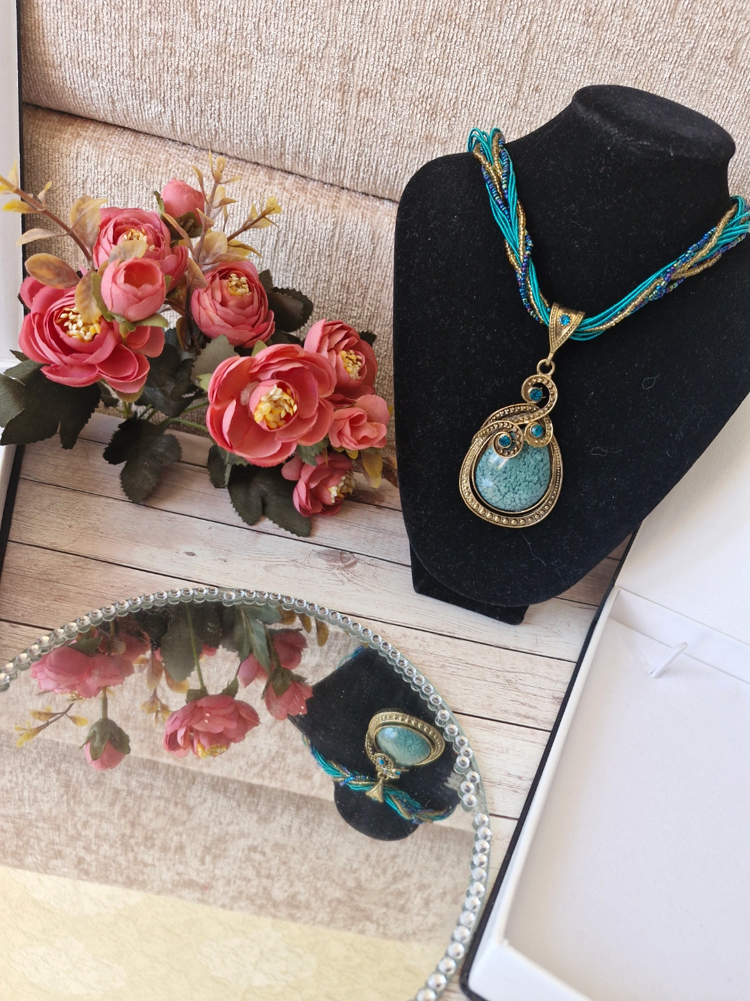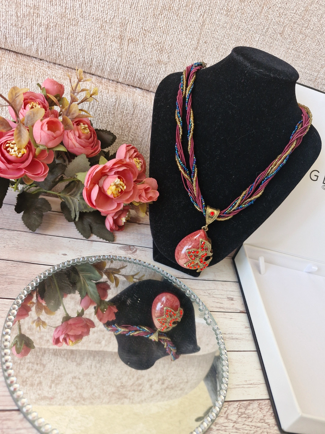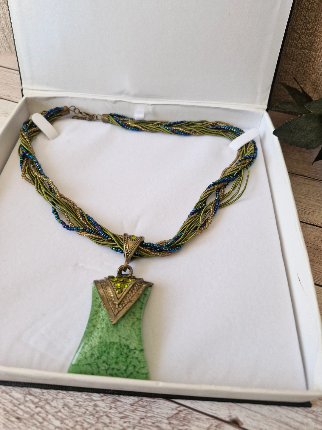 1 reviewStunning statement necklace. Features multiple strands of beaded cord and a large stone pendant. Beautiful colours and unique design. Presented in a gift box.£15each