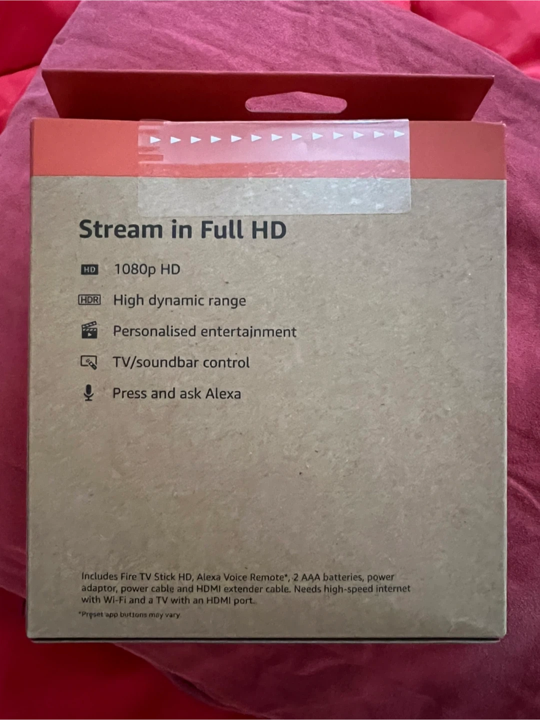 13 reviewsSelling a brand new Amazon Fire TV Stick HD. It's still in its original packaging and has never been used. - Includes Fire TV Stick HD, Alexa Voice Remote, 2 AAA batteries, power adaptor, power cable and HDMI extender cable - Needs high-speed internet with Wi-Fi and a TV with an HDMI port new in box collection from b12
