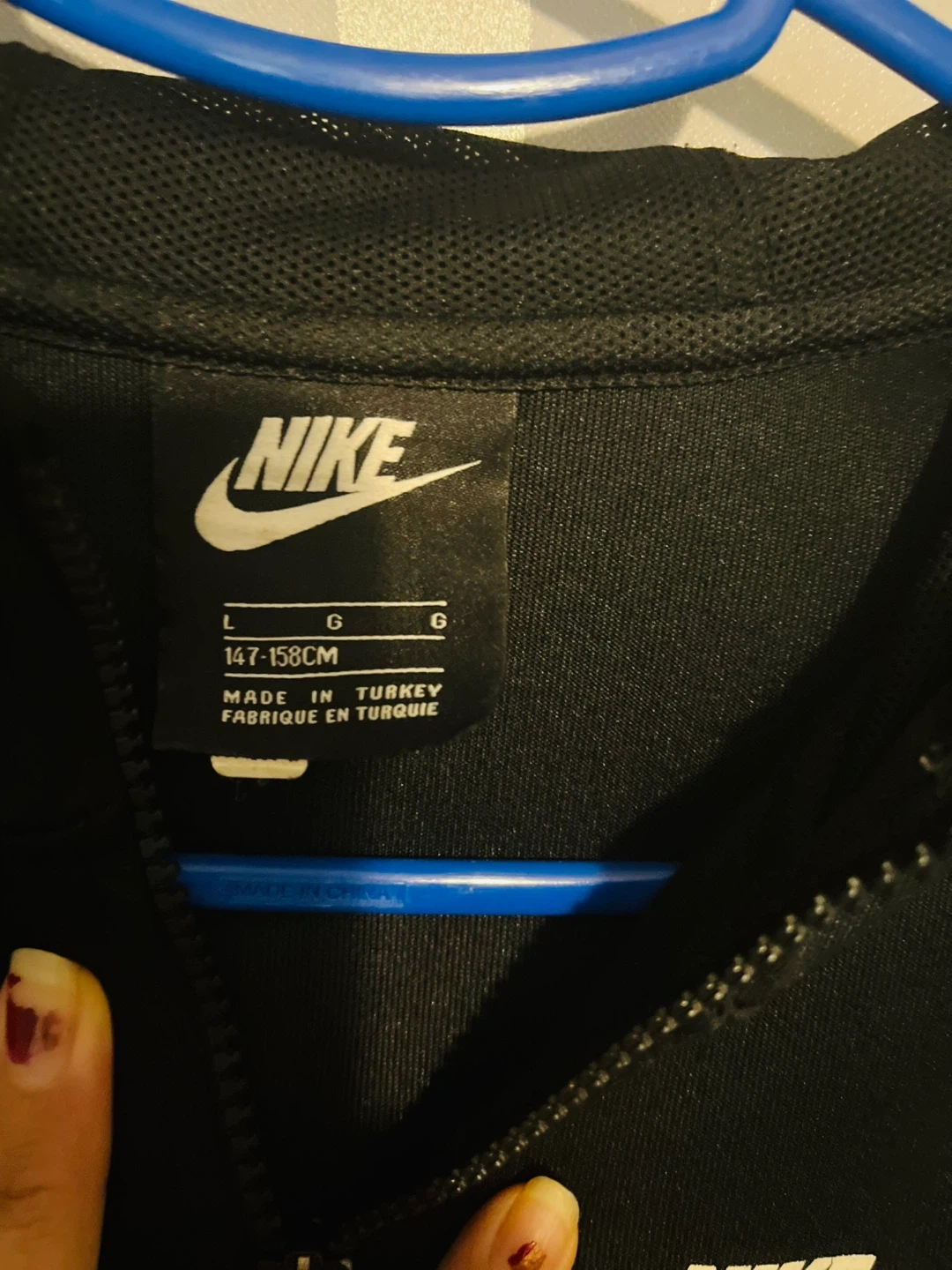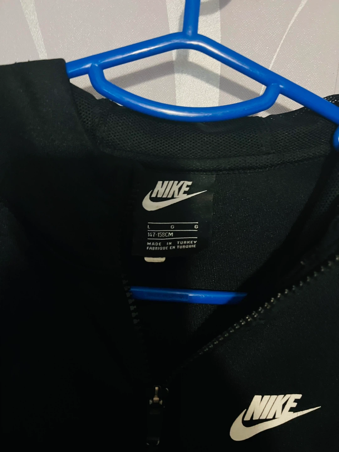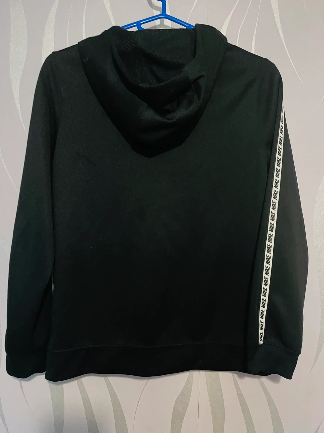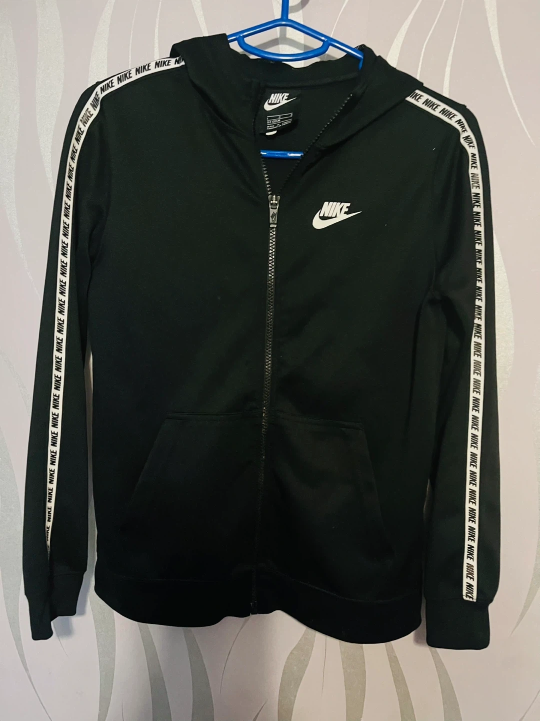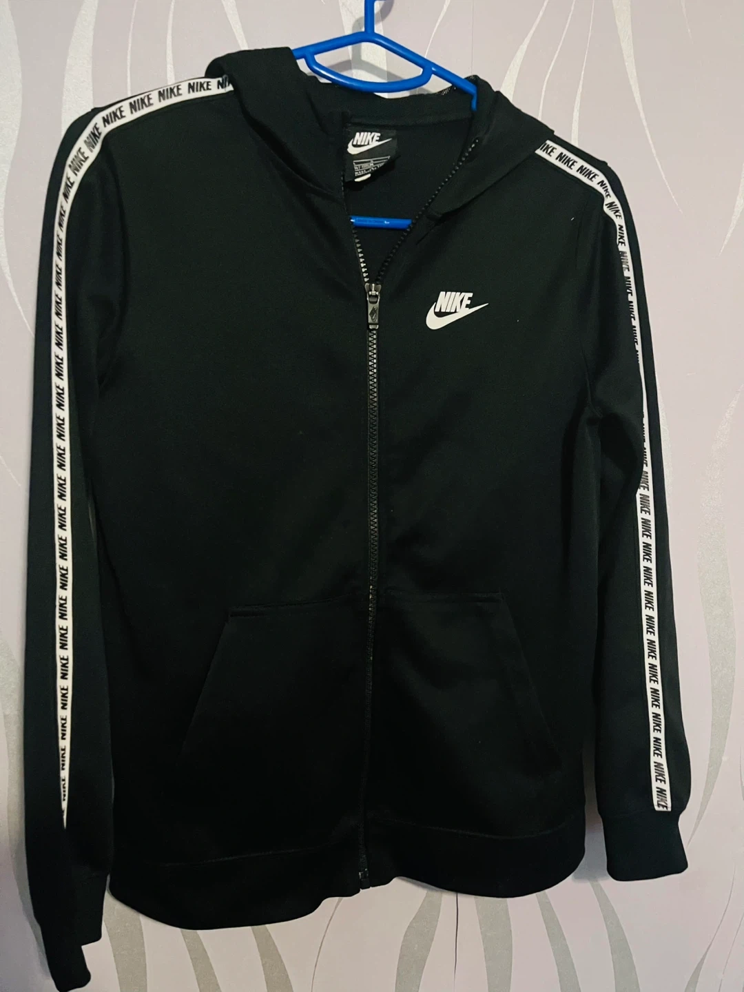 2 reviewsBlack Nike zip up hoodie with the Nike logo on the left breast and on the sleeves. Perfect for sports or casual wear!