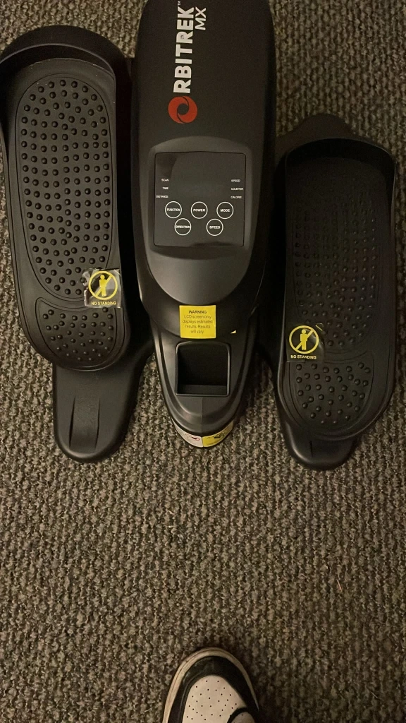 8 reviewsHere's an Orbitrek MX elliptical machine, perfect for getting some exercise in while working at your desk! It's in good condition and ready to go. It has a max foot pedal load weight of 20kg (44lbs).