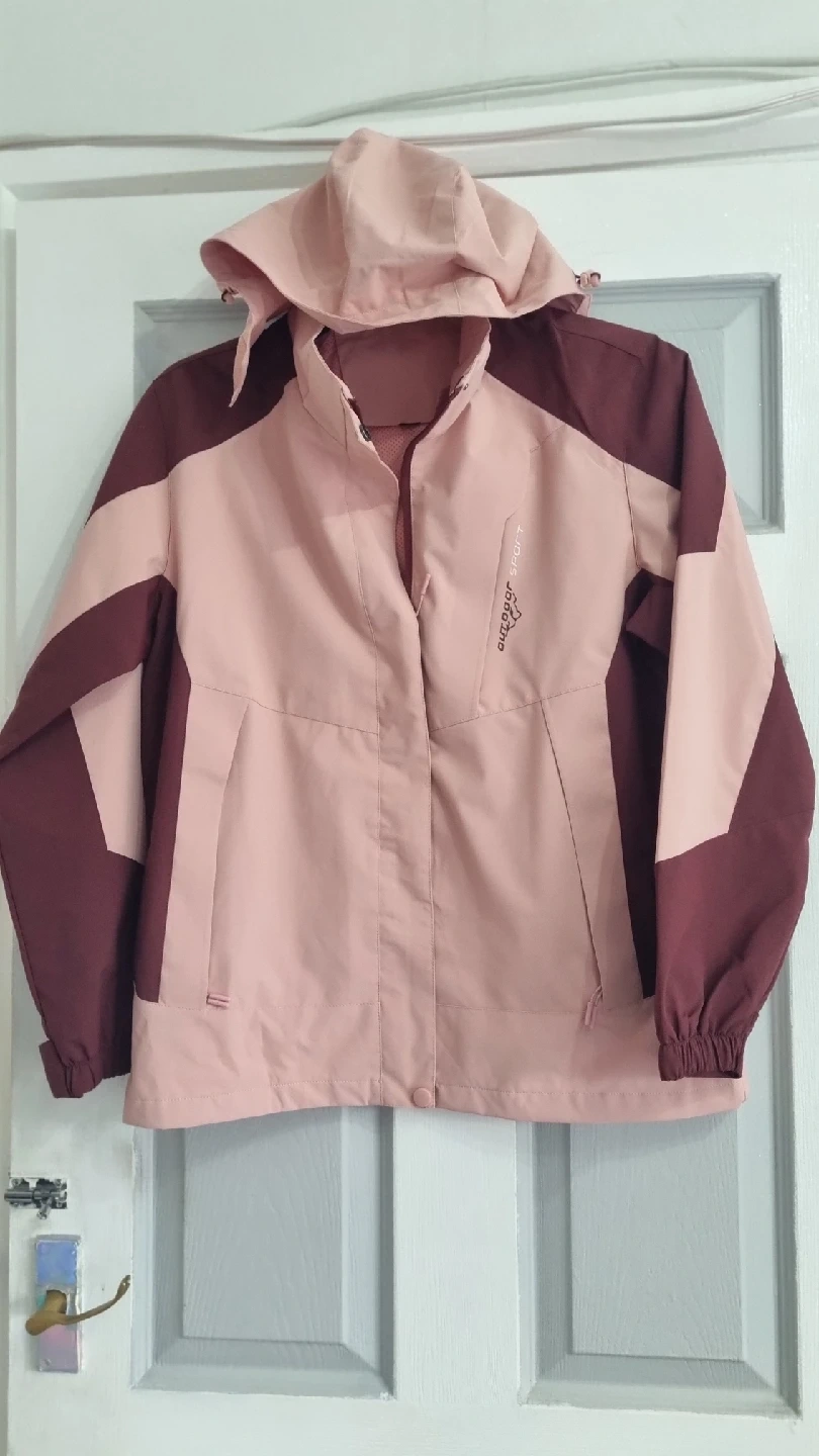 24 reviewsSelling a lovely lightweight Outdoor waterproof, ideal for hiking. Sport hooded jacket in size medium. It's a stylish combination of pink and burgundy. Made from 100% polyester, it's lightweight and perfect for outdoor activities