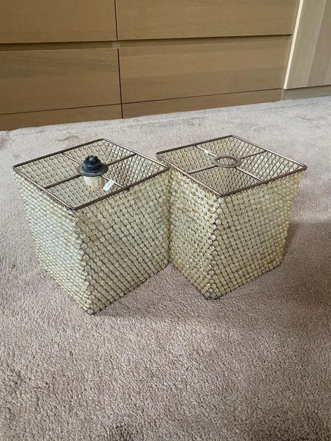 18 reviewsSelling a pair of square lamp shades. They're made of metal and covered in small beads. Would look lovely in any room! Collection only