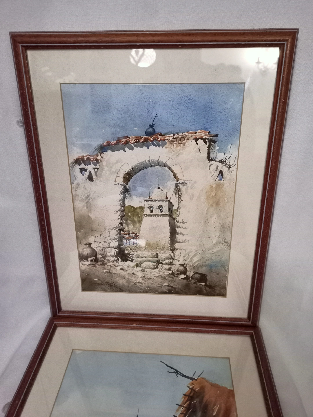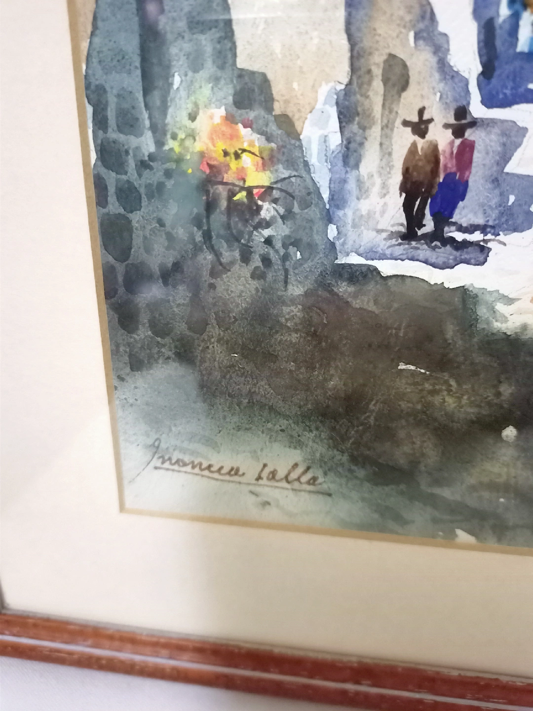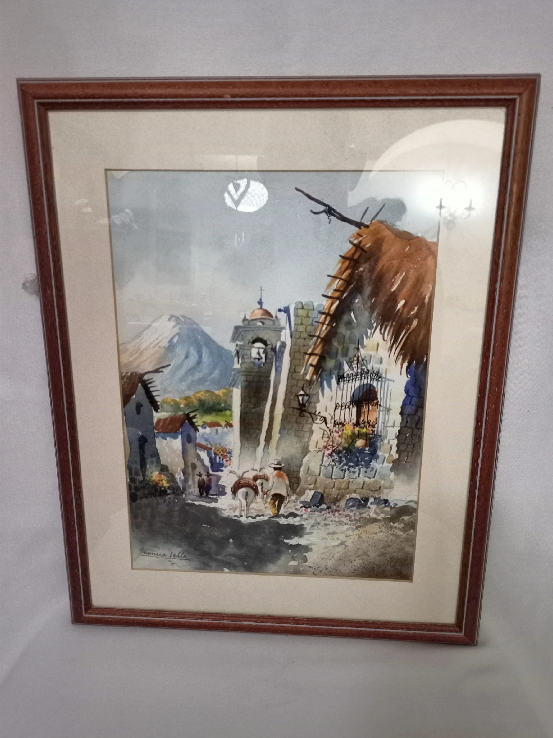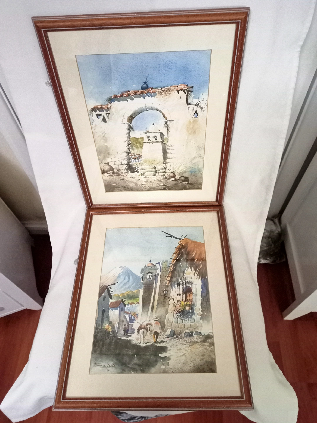 144 reviewsLOVELY PAIR OF ORIGINAL WATER COLOURS SOUTH AMERICA? NOT SURE OF THE ARTIST SIGNATURE POSSIBLY 'LALLA'? NICE & BRIGHT, COLOURFUL APPROX 16" BY 13" NICELY FRAMED VERY NICE CONDITION READY TO HANG.
