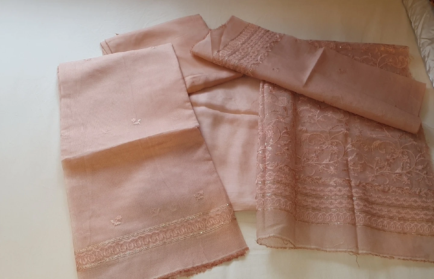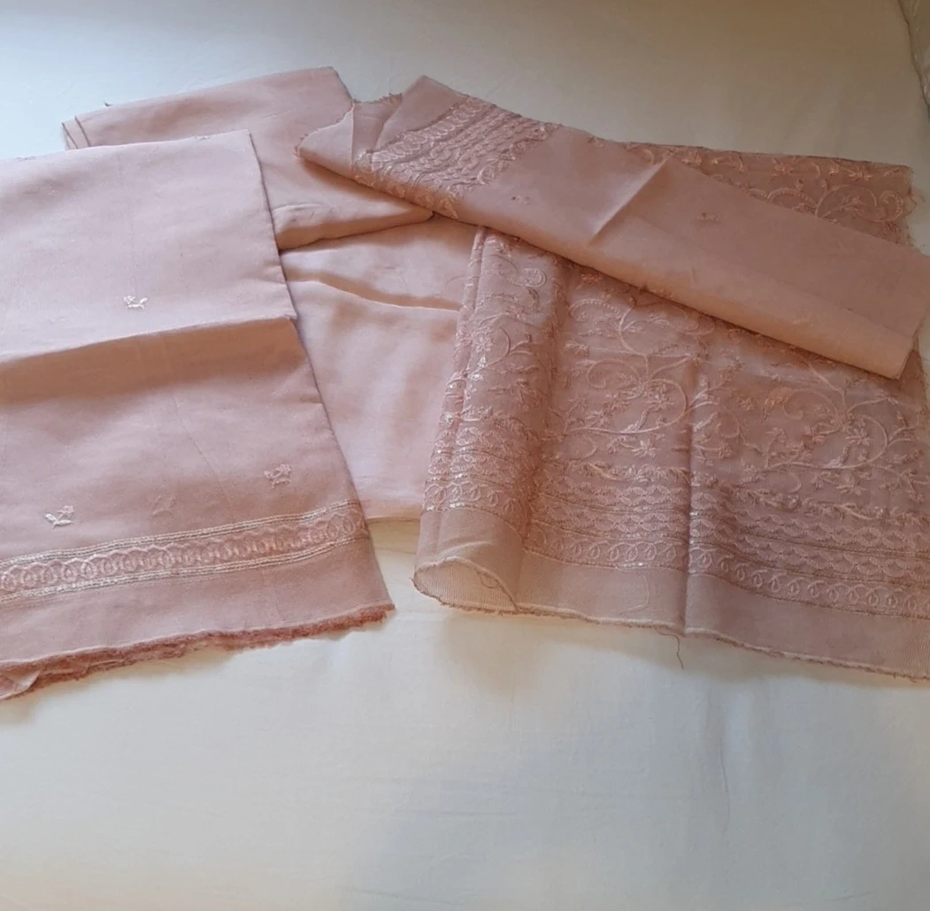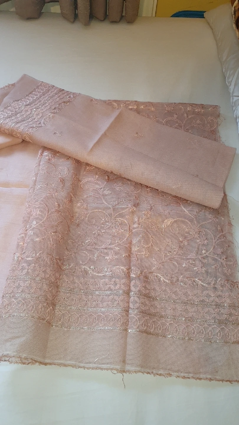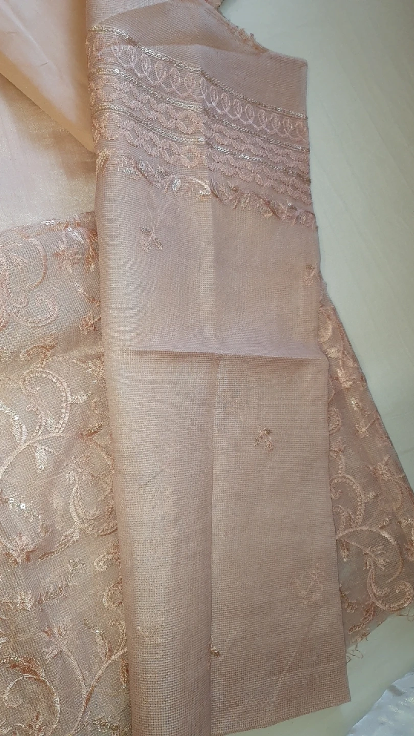 32 reviewsUnstitched fabric in a lovely peach colour, perfect for creating your own unique outfit. The fabric features delicate embroidery and a subtle sheen, adding a touch of elegance.