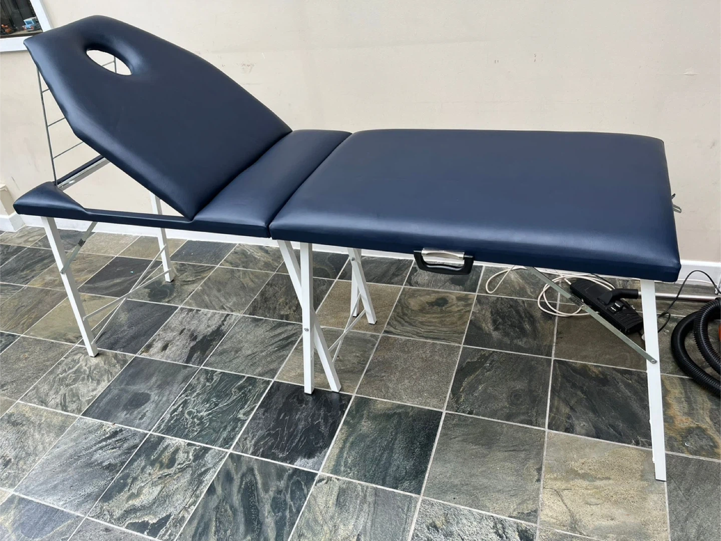 43 reviewsHere's a portable massage table, perfect for setting up wherever you need! It comes in a lovely blue colour and includes a handy carry bag for easy transport and storage