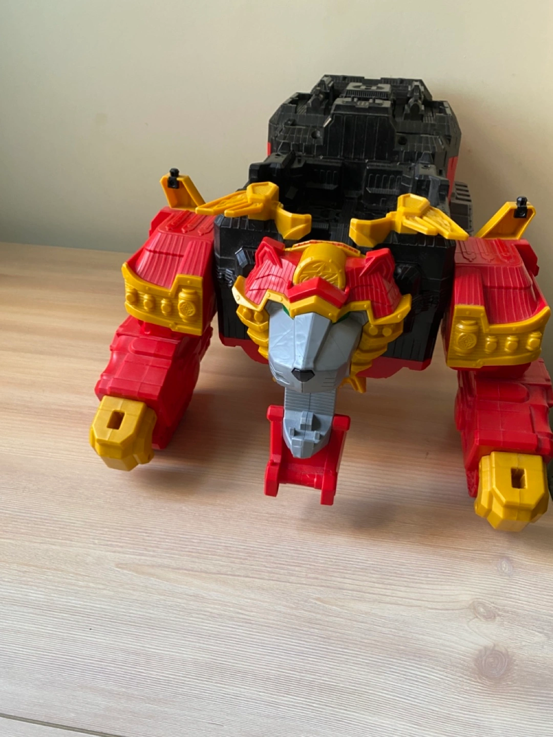 1 reviewLarge red and black transforming robot toy. Features gold detailing and a lion head. Multiple moving parts. Suitable for children.