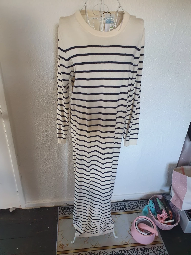 0 reviewsHere's a lovely striped knitted maxi dress from Primark. It's a size medium and made from 50% cotton from Primark's sustainable cotton programme. Originally bought for £17