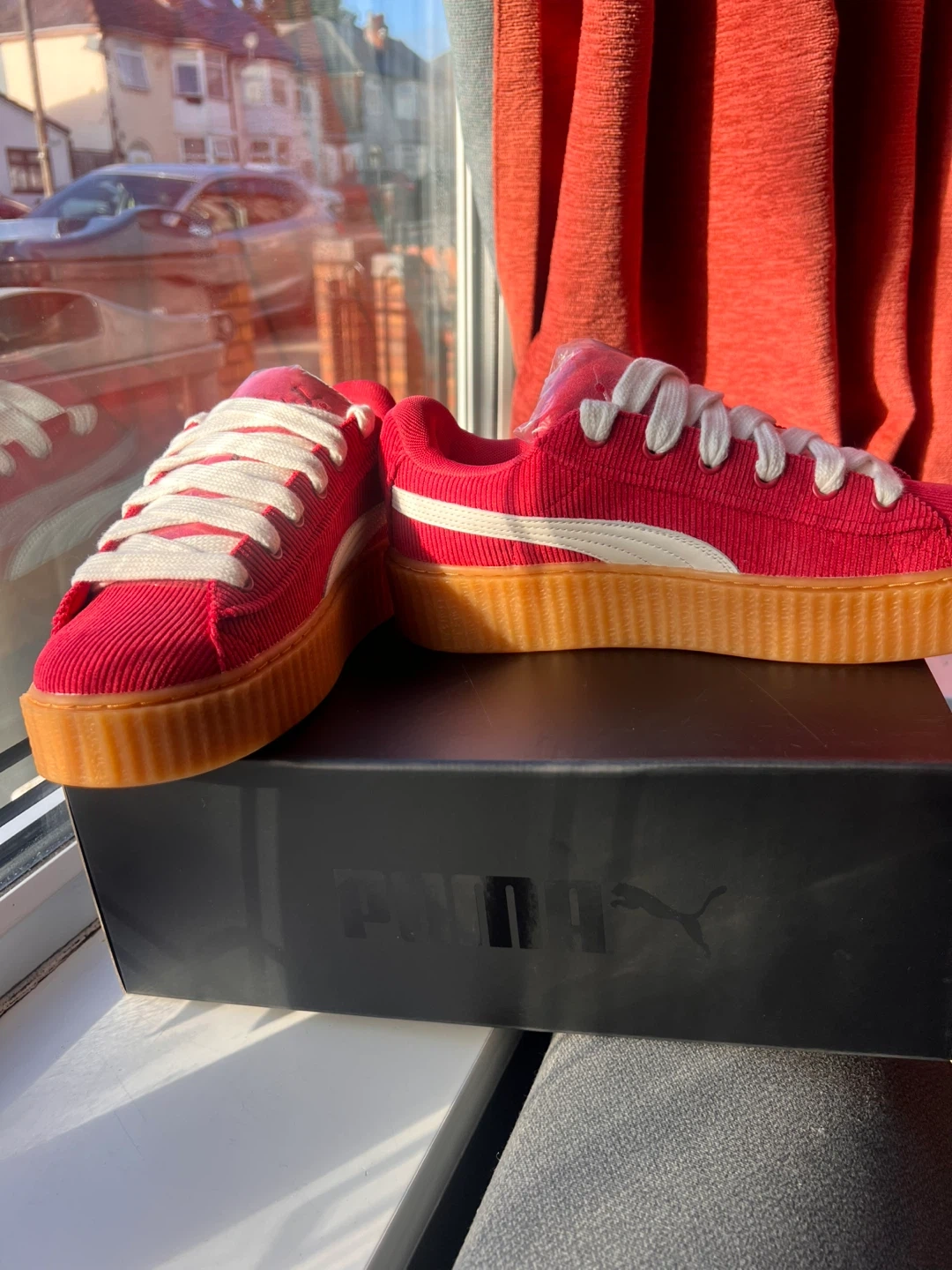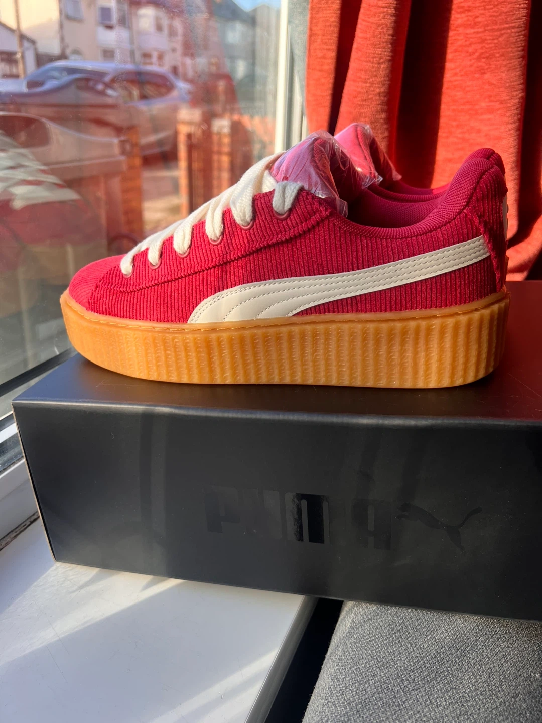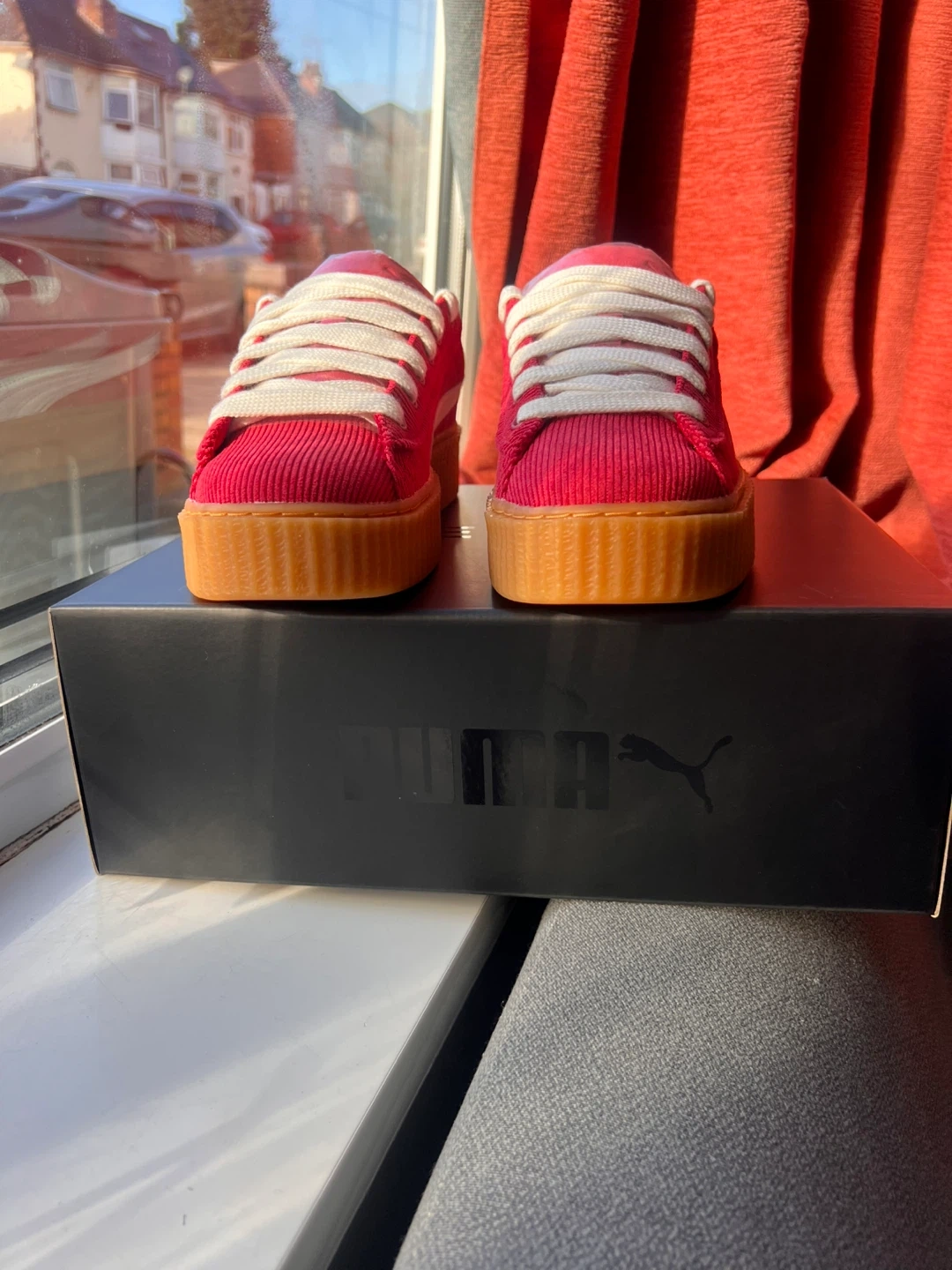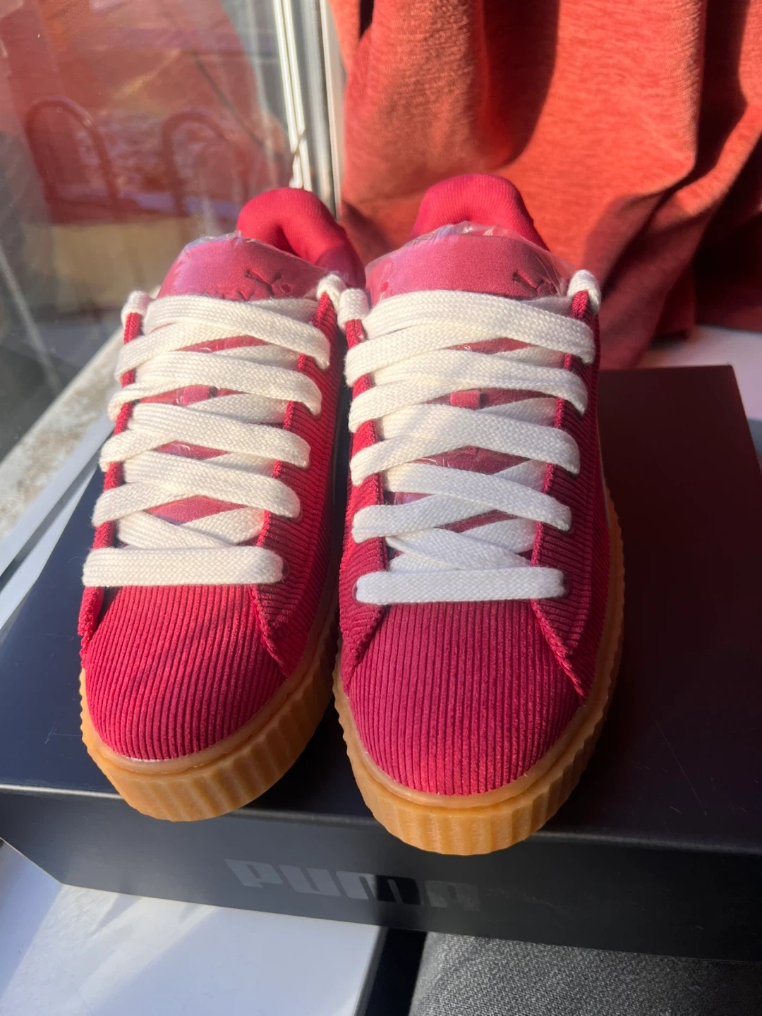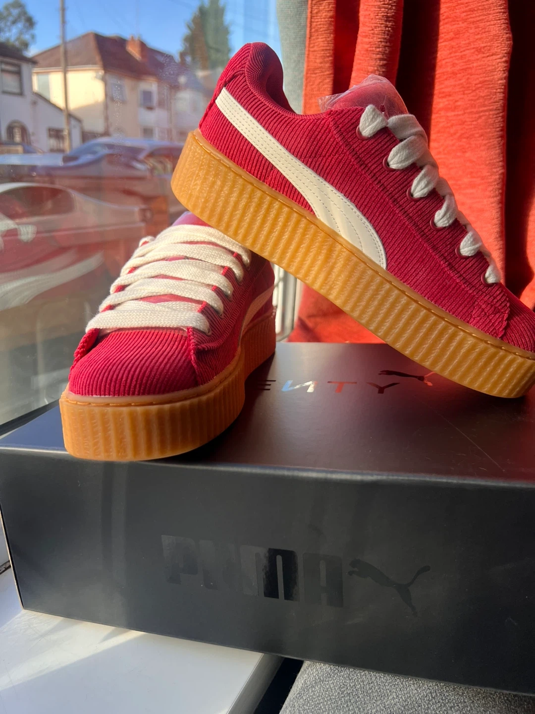0 reviewsRed Corduroy Puma Fenty By Rihanna For sale. Brand new, 100% real and straight from the company . It is specially made to suit your comfort . Coles with an extra strap and Fenty Bag. Same Day postage available