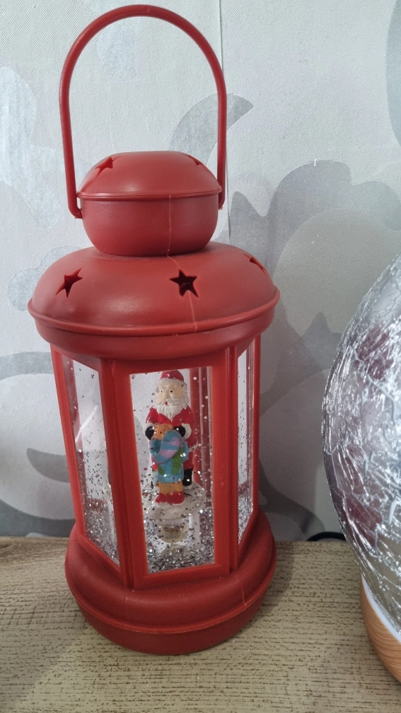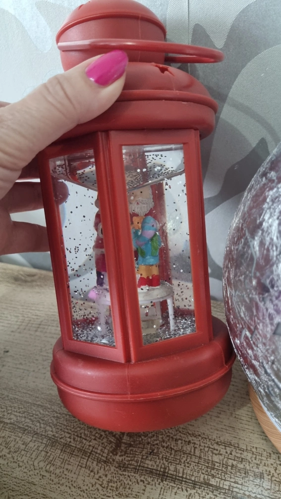 24 reviewsA lovely light up red Christmas lantern with a snow globe effect inside. Perfect for adding a festive touch to any room during the holidays. lights up bright when when turned on,also can have music playing on it. takes three triple A batteries.no cover for batteries. Batteries not included.