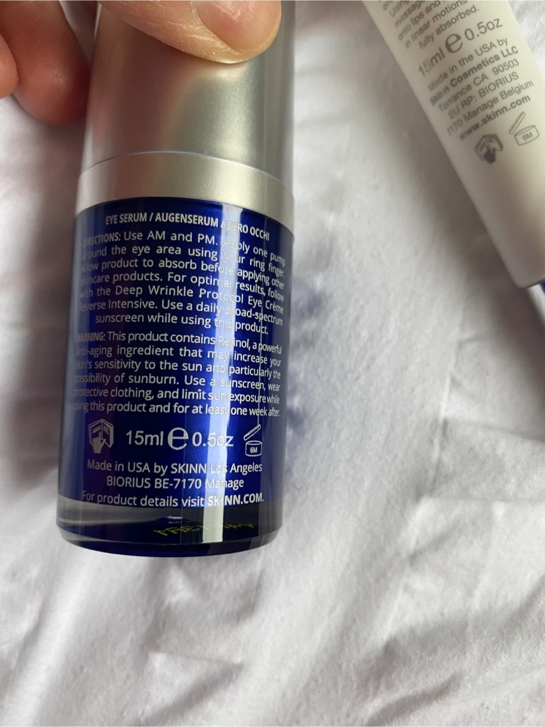 43 reviewsHere's a bundle of Skinn skincare products! Included is the Deep Wrinkle Protocol Age Reset Eye Serum Intensive with Ferulic Acid, Retinol + Vitamin C, and the PEP40 Baume Riche Targeted Lip & Laugh Line Treatment. The eye serum is 15ml and the lip treatment is also 15ml.