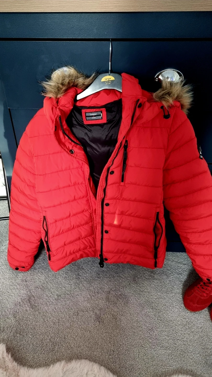 24 reviewsHere's a Superdry padded jacket in a vibrant red colour. It features a fur-trimmed hood, perfect for keeping you warm and stylish during colder weather. It's in great condition and ready for a new owner! hood can be zipped off, worn twice for 30 mins so excellent condition.