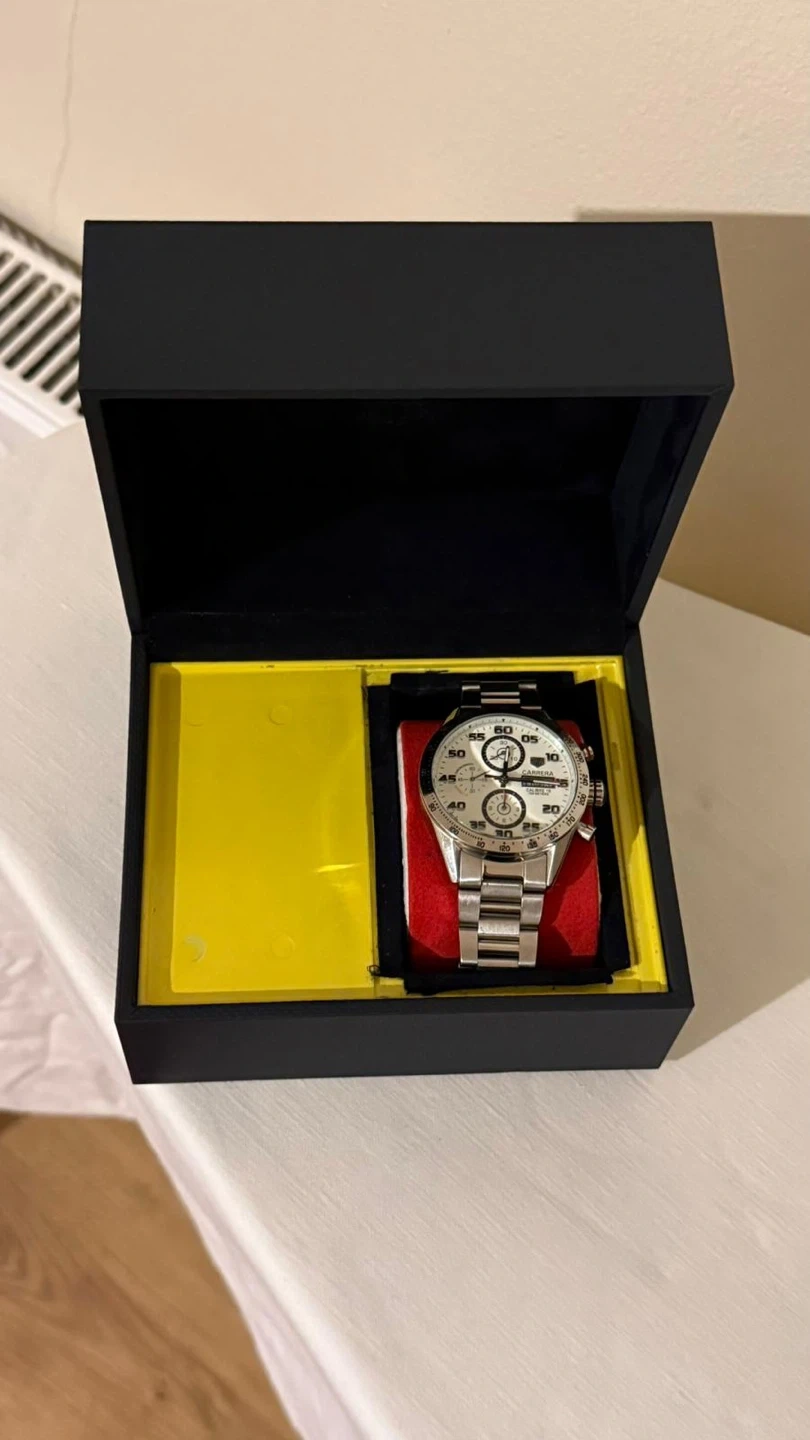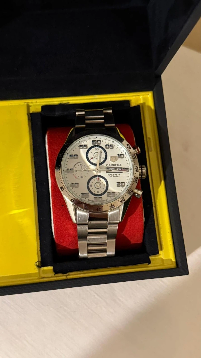 0 reviewsSelling a lovely TAG Heuer Carrera Calibre 16 automatic chronograph watch. It's in great condition and comes with the original box. A stylish and reliable timepiece!