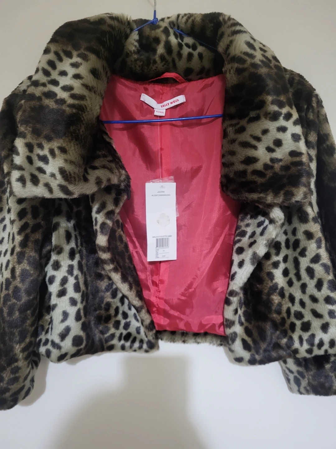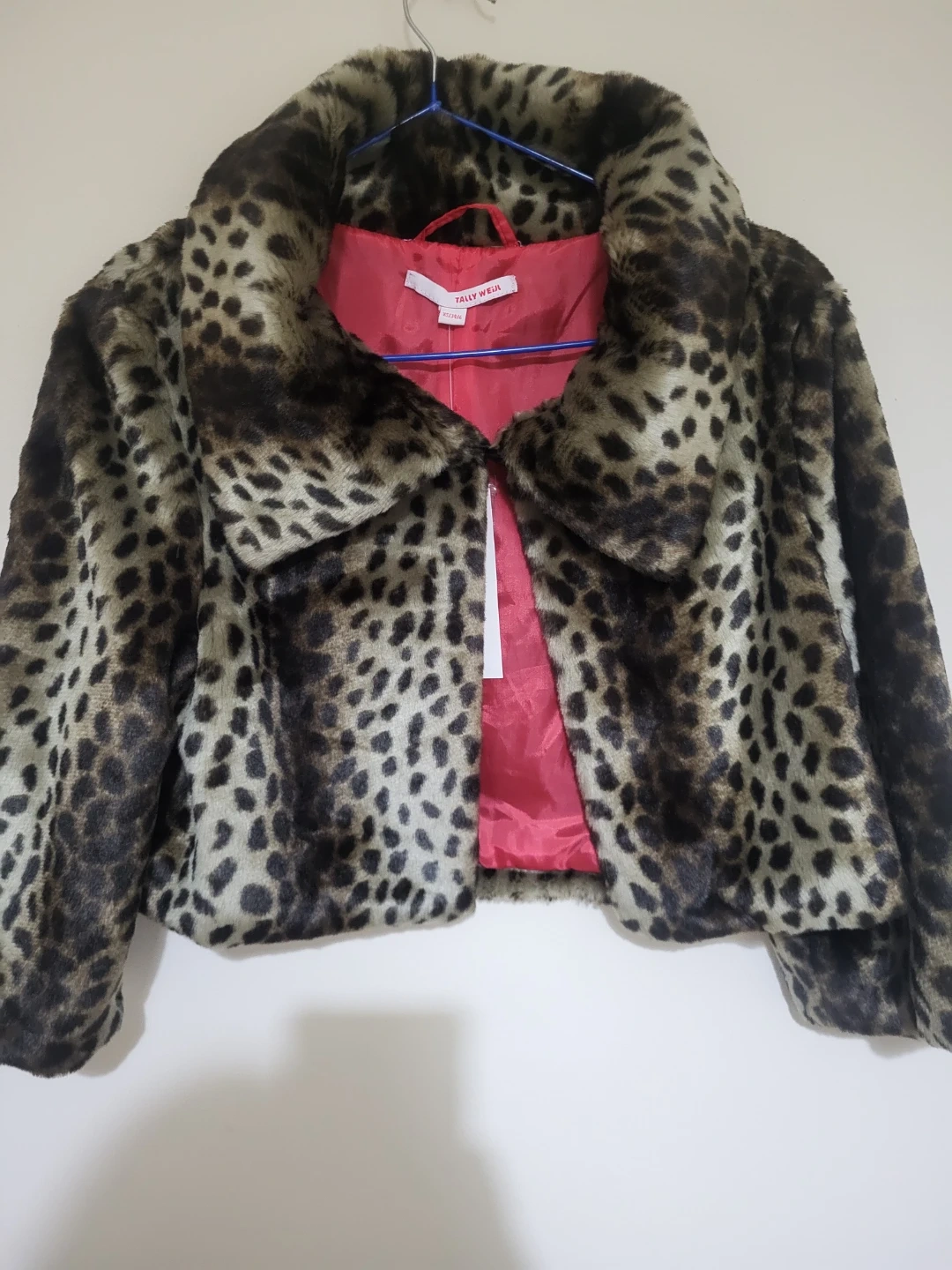 0 reviewsHere's a stylish Tally Weijl jacket featuring a bold leopard print. It's made from faux fur, making it a cosy and fashionable choice for cooler weather. The jacket has a cropped style, perfect for layering over your favourite outfits. New with tag. Collection only please.