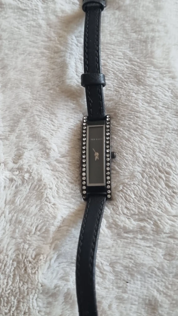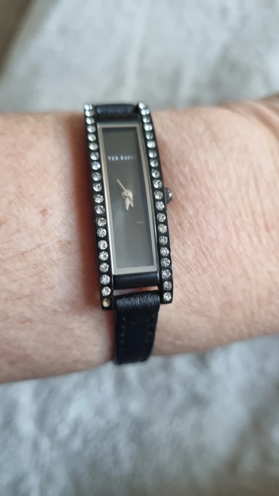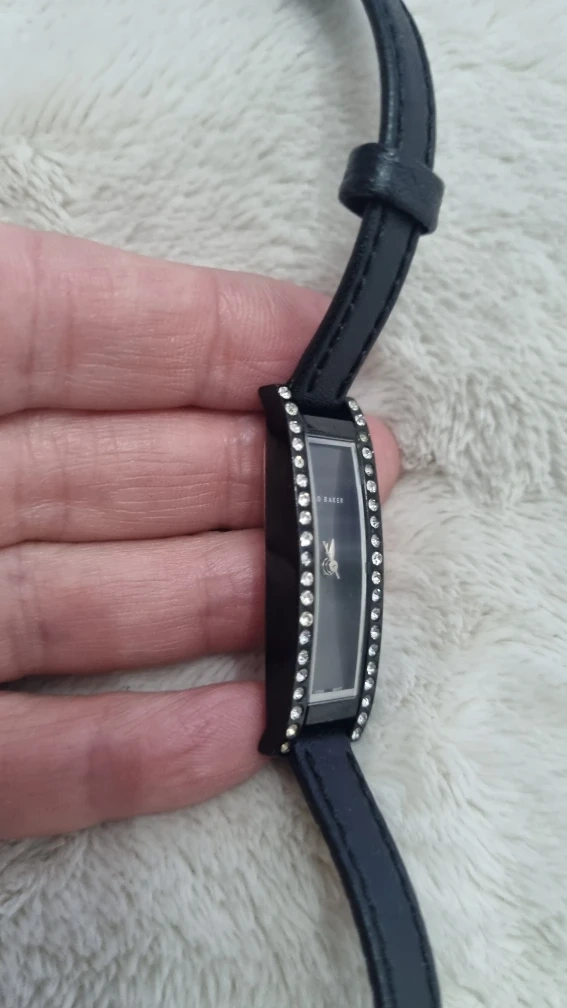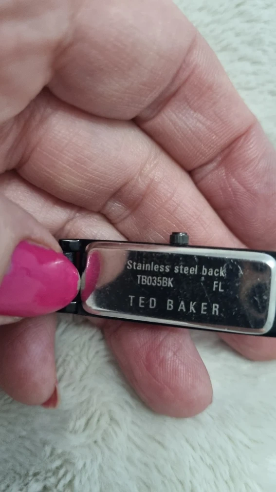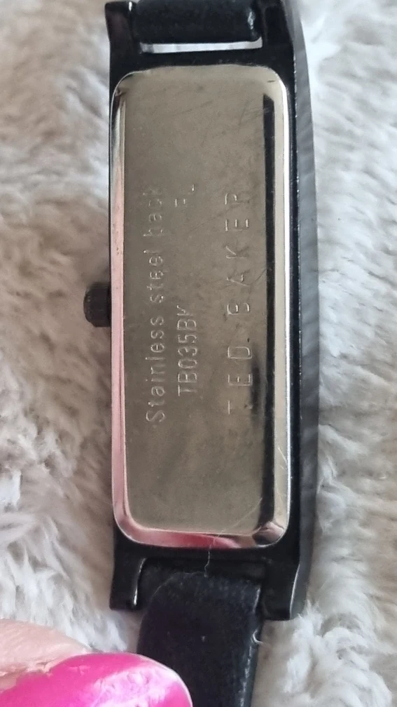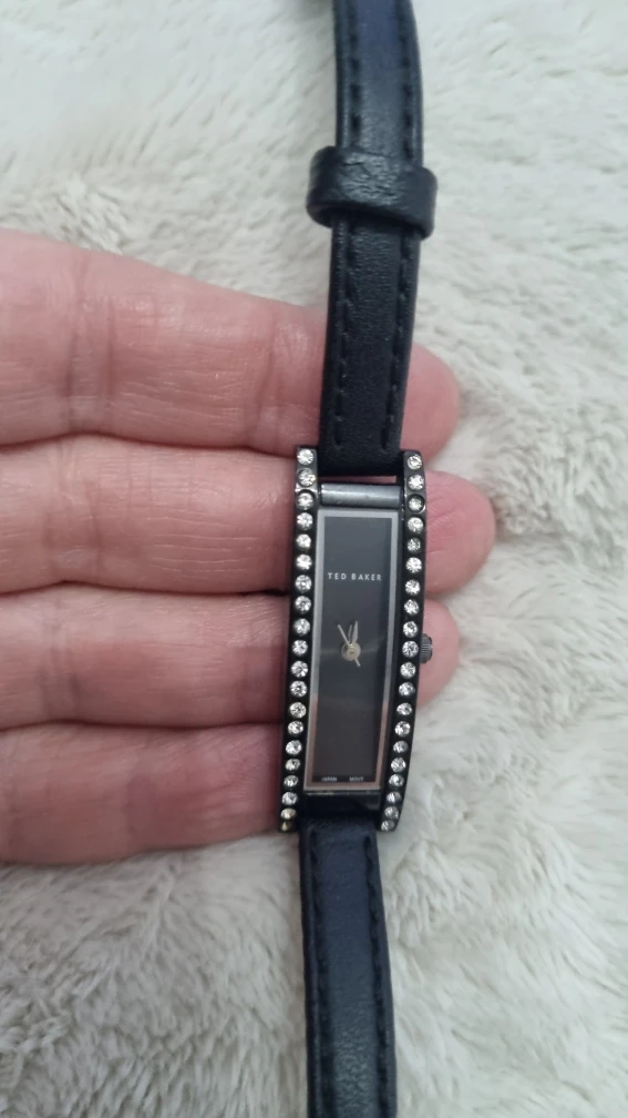 24 reviewsA lovely Ted Baker ladies' watch, model number TB035BK. It features a stainless steel back and a stylish design with crystal detailing. The strap is black leather. ready for a new home! needs battery strap bit worn