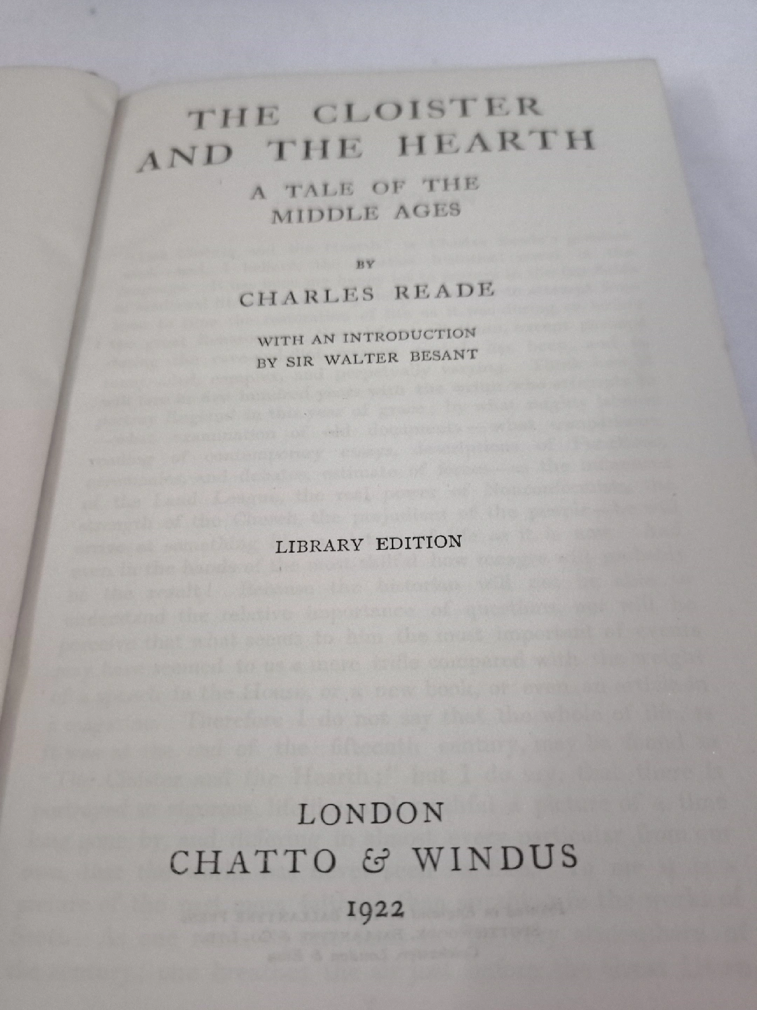 149 reviewsTHE CLOISTER AND THE HEARTH CHARLES READE HARDBACK LIBRARY EDITION LONDON CHATTO & WINDUS 1922 VERY NICE CONDITION FOR AGE.