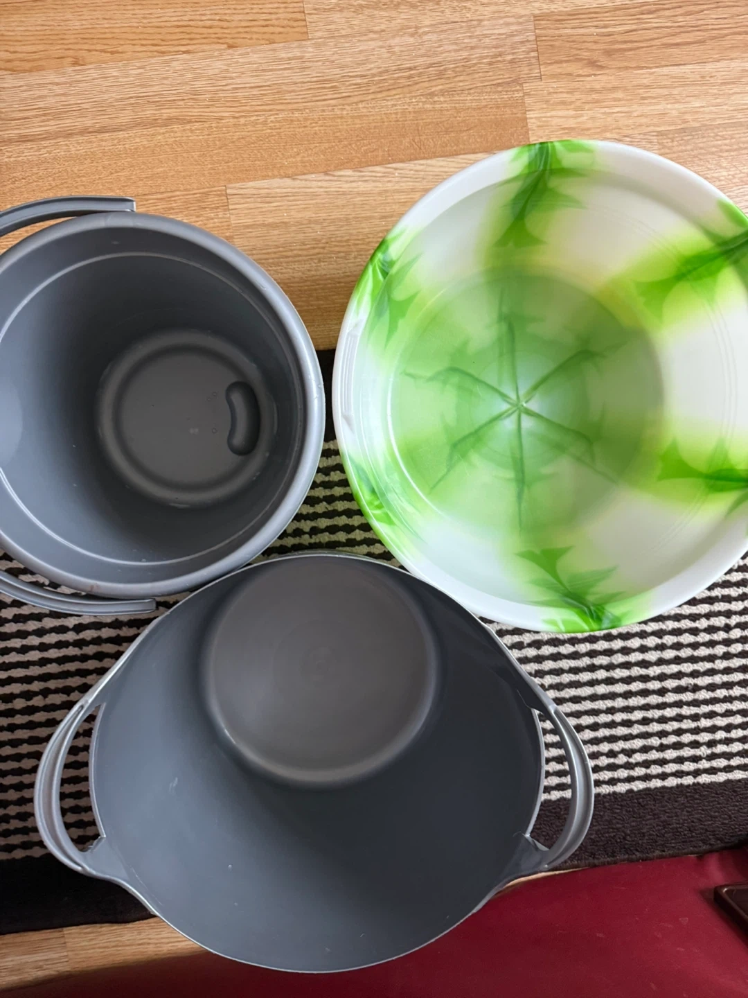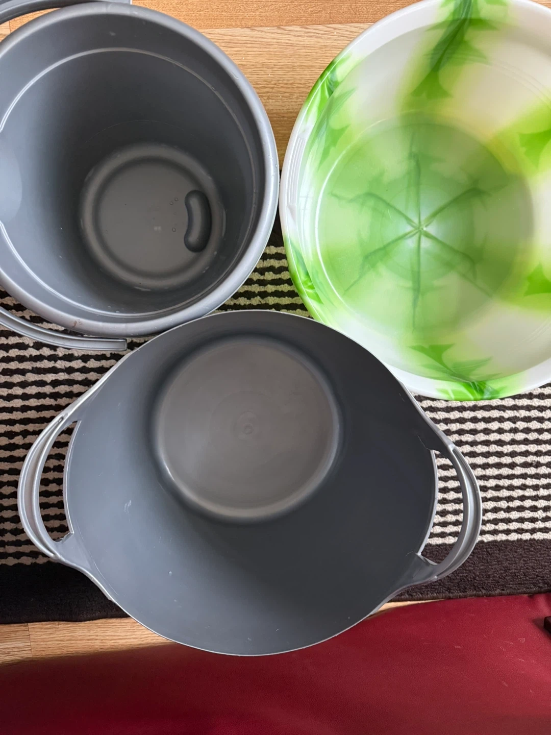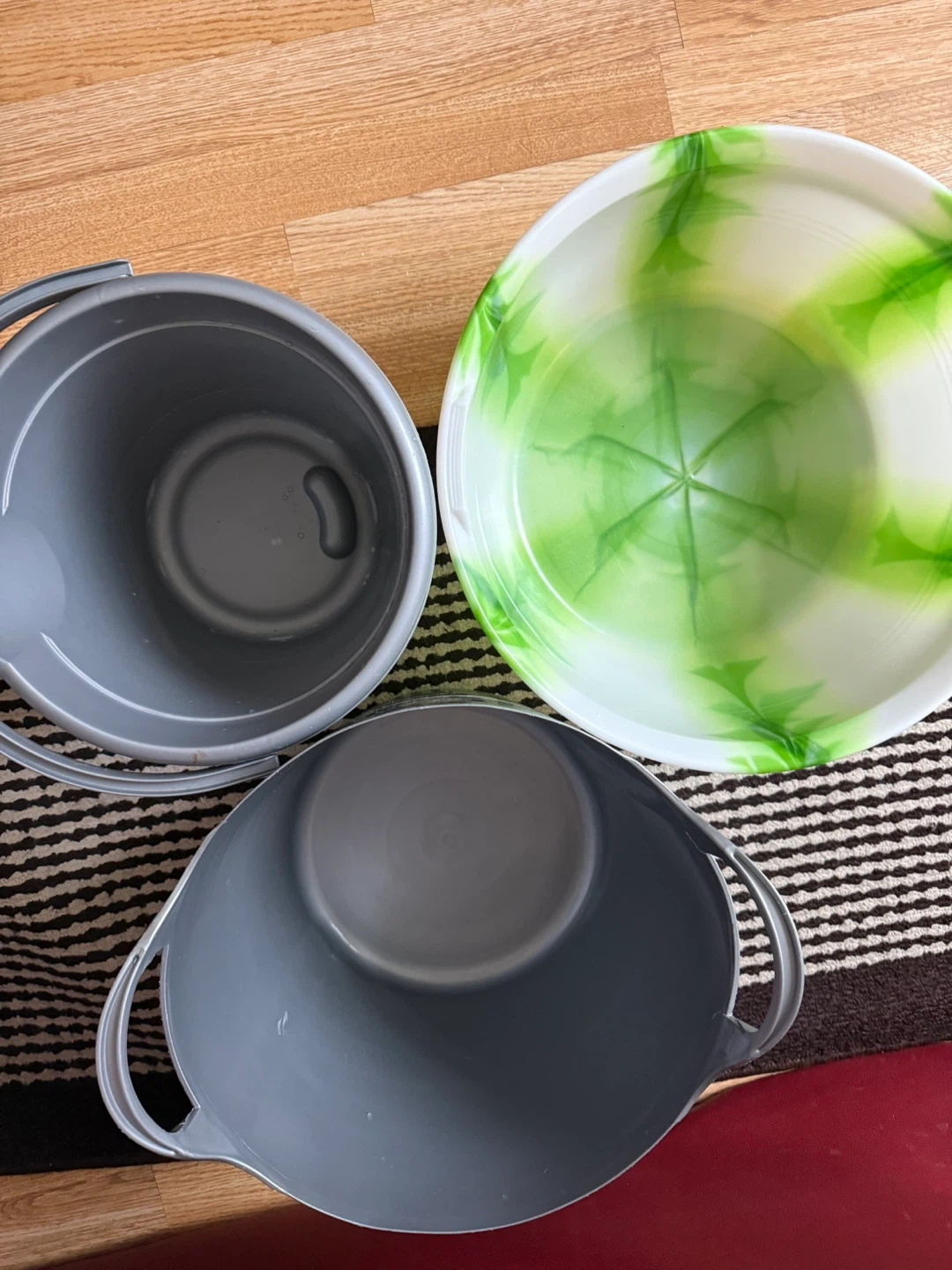 7 reviewsSelling three plastic buckets. Two are grey and one is white with a green leaf design. They're in good condition and ready for a new home