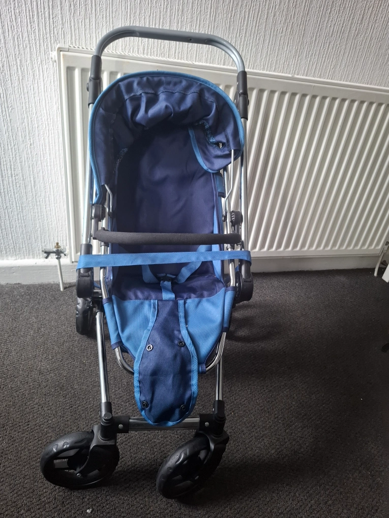 0 reviewsSelling a cute blue toy baby stroller for kids. It’s in great condition, lightweight, and easy to push around — perfect for little ones who love playing with their dolls or pretend play. Clean and ready for more fun