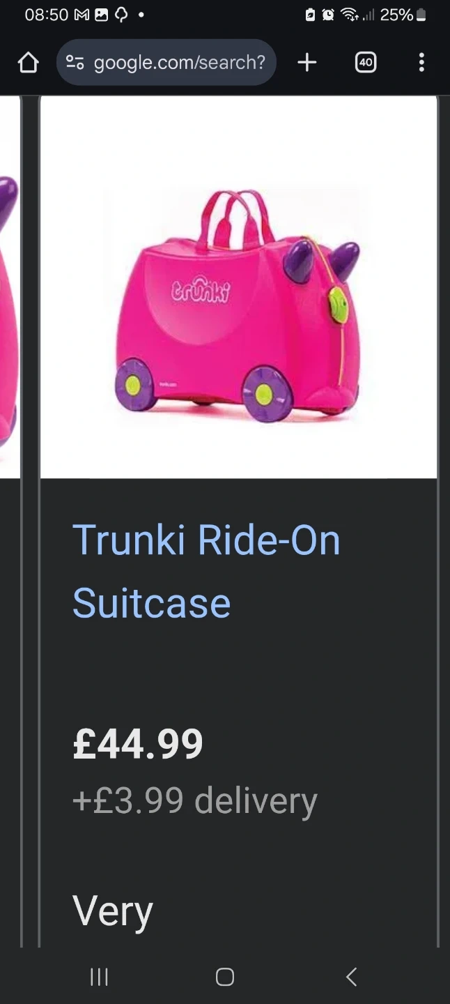 2 reviewsHere's a pink Trunki ride-on suitcase! The image shows it retails for £44.99 plus delivery. It's perfect for little ones on the go