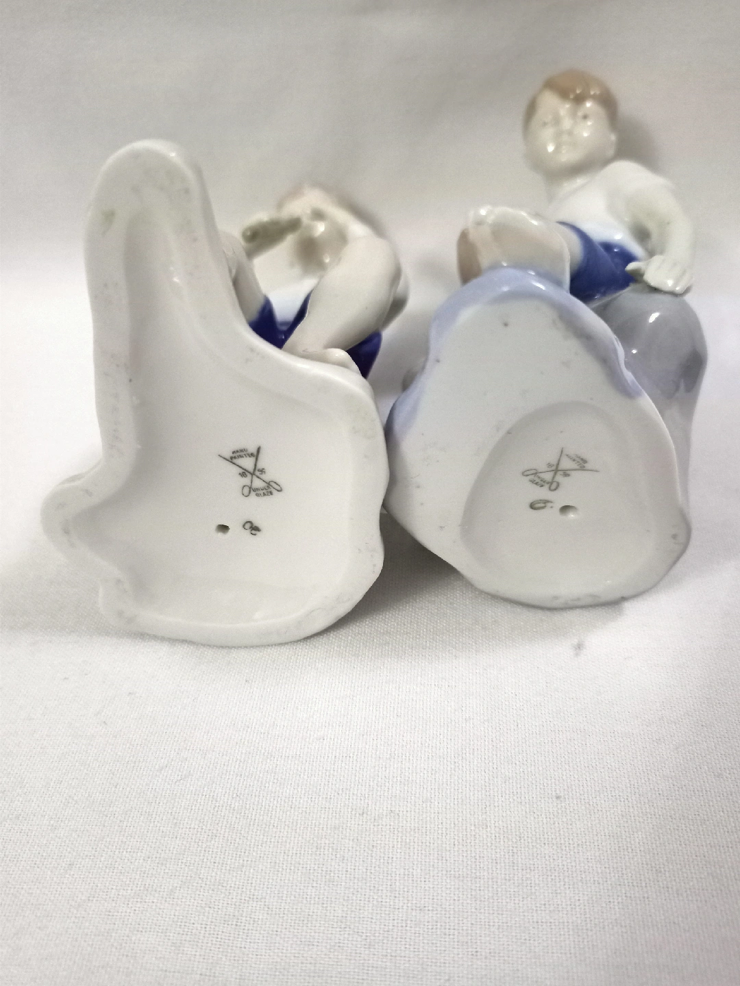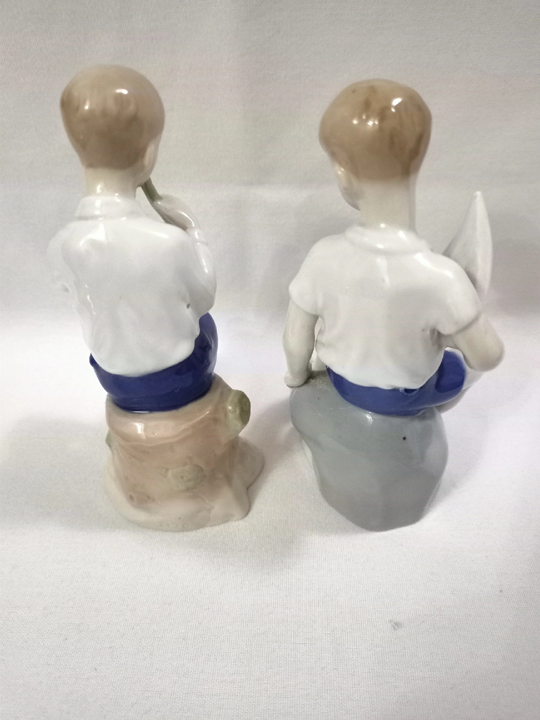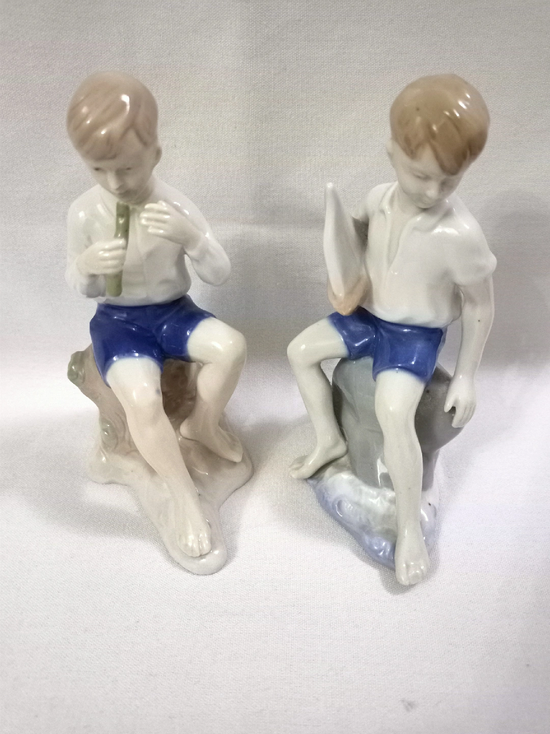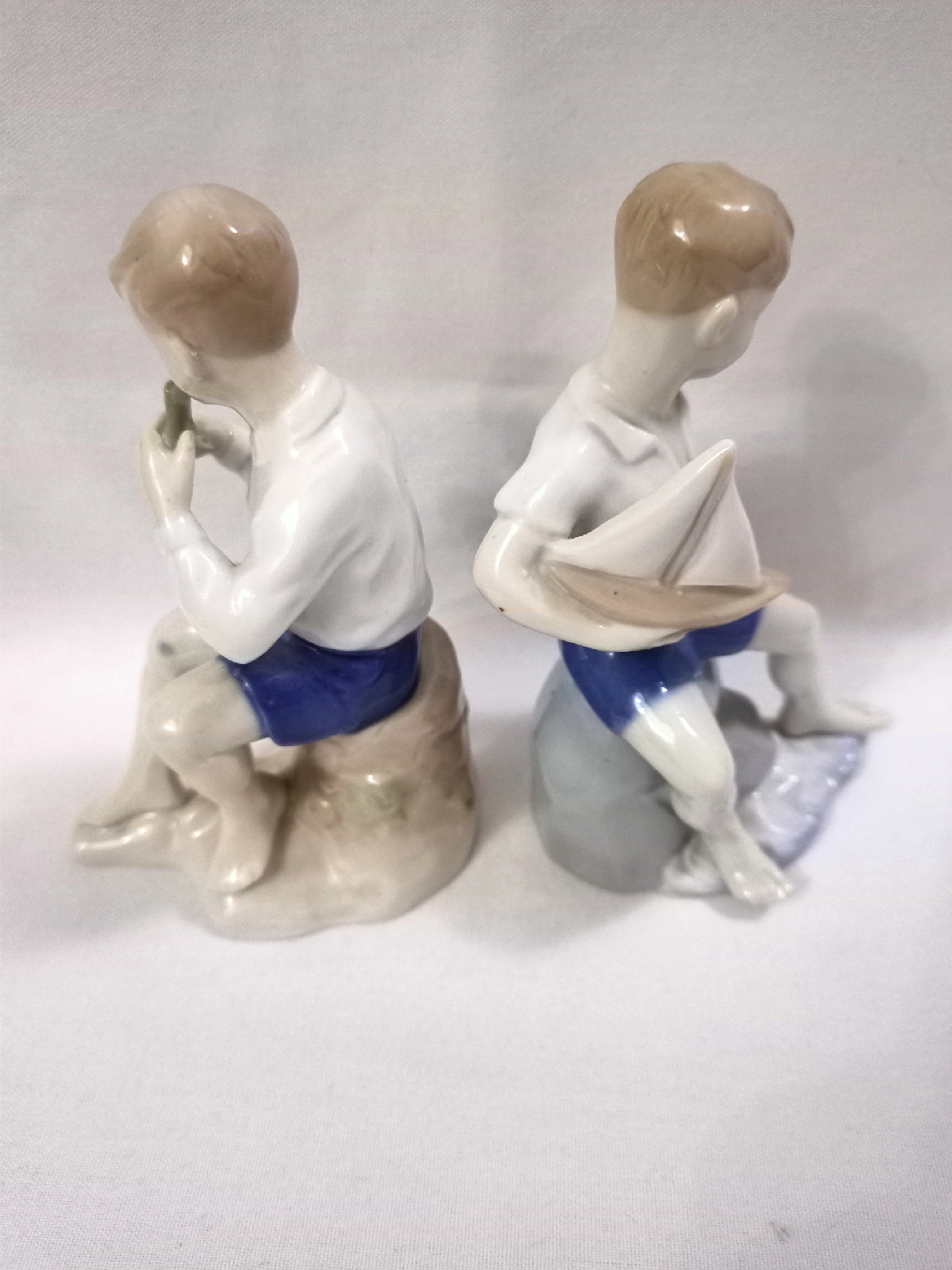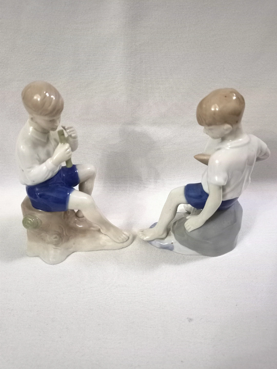 153 reviewsVINTAGE CARL SCHNEIDER GERMAN PORCELAIN FIGURINES TWO SITTING BOYS ONE WITH SAIL BOAT & THE OTHER PLAYING FLUTE APPROX 5.5"-6" HIGH VERY GOOD CONDITION 1950s.