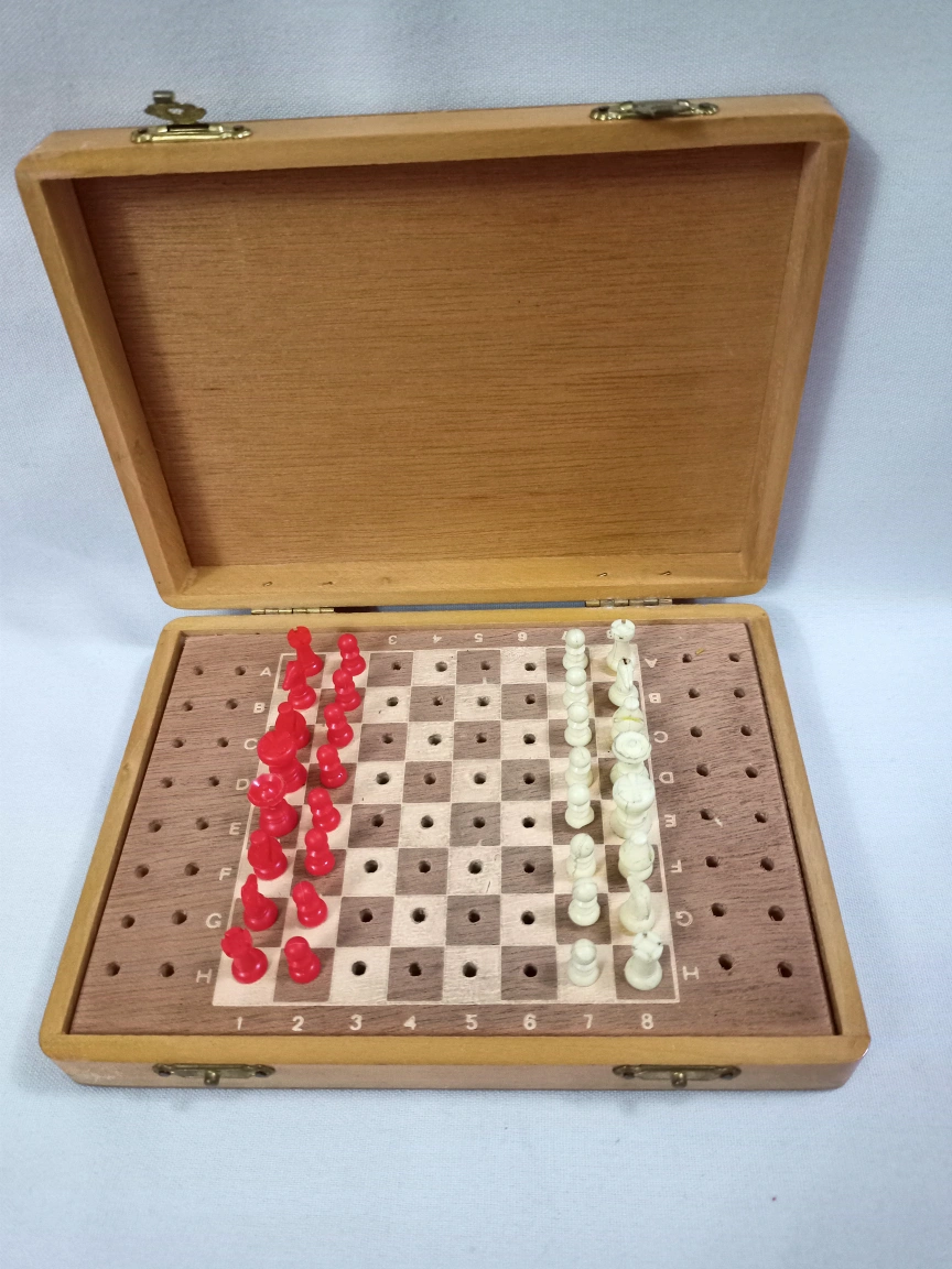 143 reviewsLOVELY VINTAGE JAQUES TRAVEL CHESS SET WOODEN CASE & BOARD WITH PLASTIC PIECES WITH QUALITY BRASS FITTINGS GREAT THING.