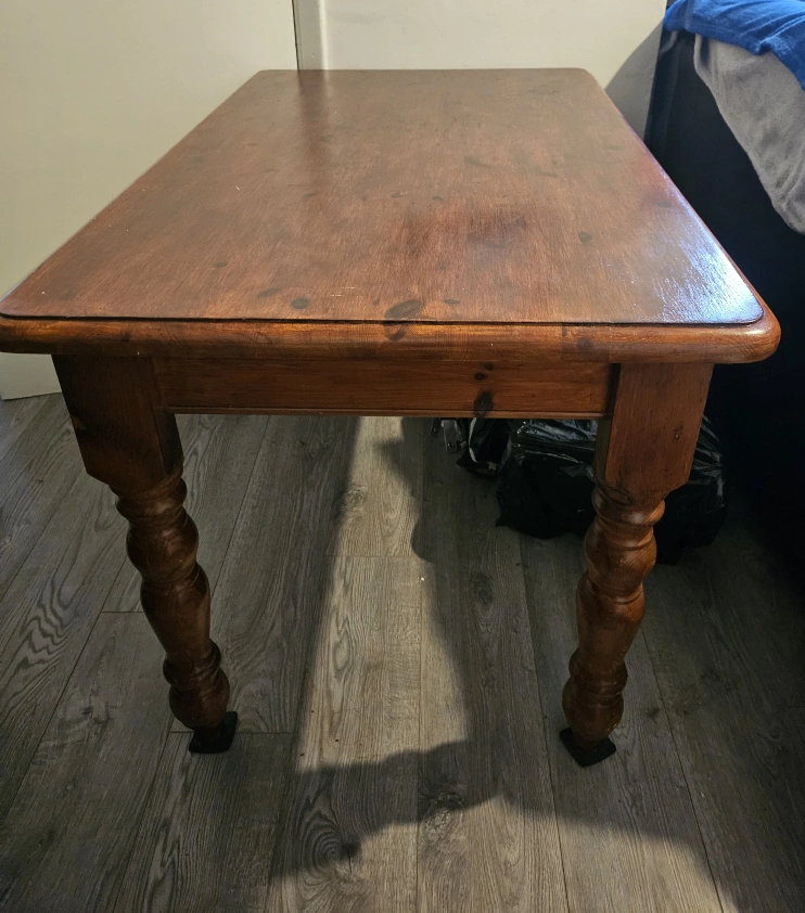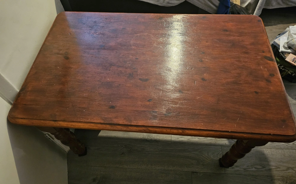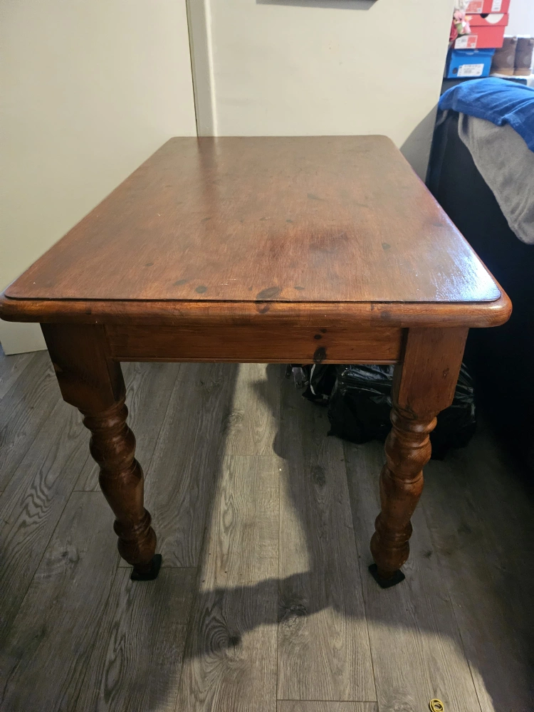 1 reviewA lovely vintage wooden table, perfect for adding a touch of rustic charm to your home. It's in good condition, with some signs of wear that add to its character. It would be great as a side table or a small desk.48 inches long, 30 inches wide 30 inches hight