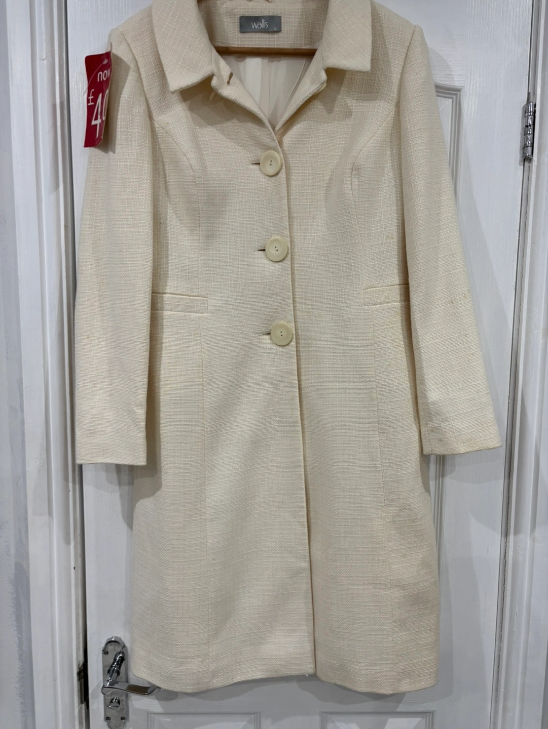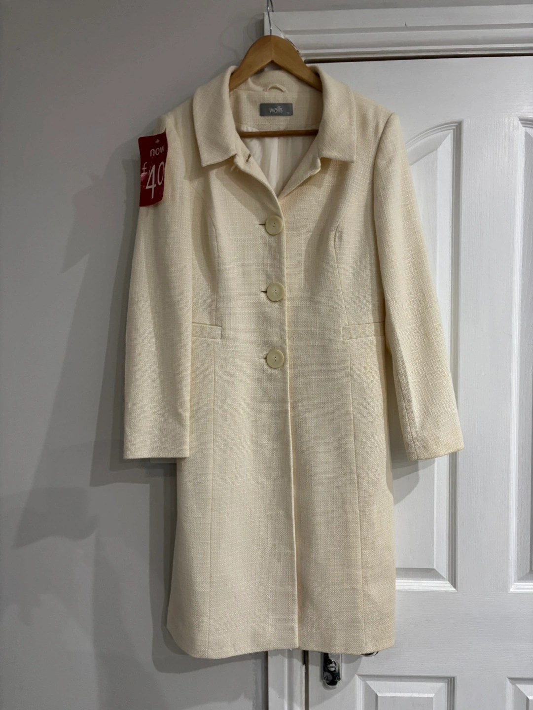 1 reviewHere's a lovely cream coat from Wallis. It's in Brand newcondition and has a classic, elegant look. Originally priced at £40. Perfect for adding a touch of sophistication to your wardrobe!