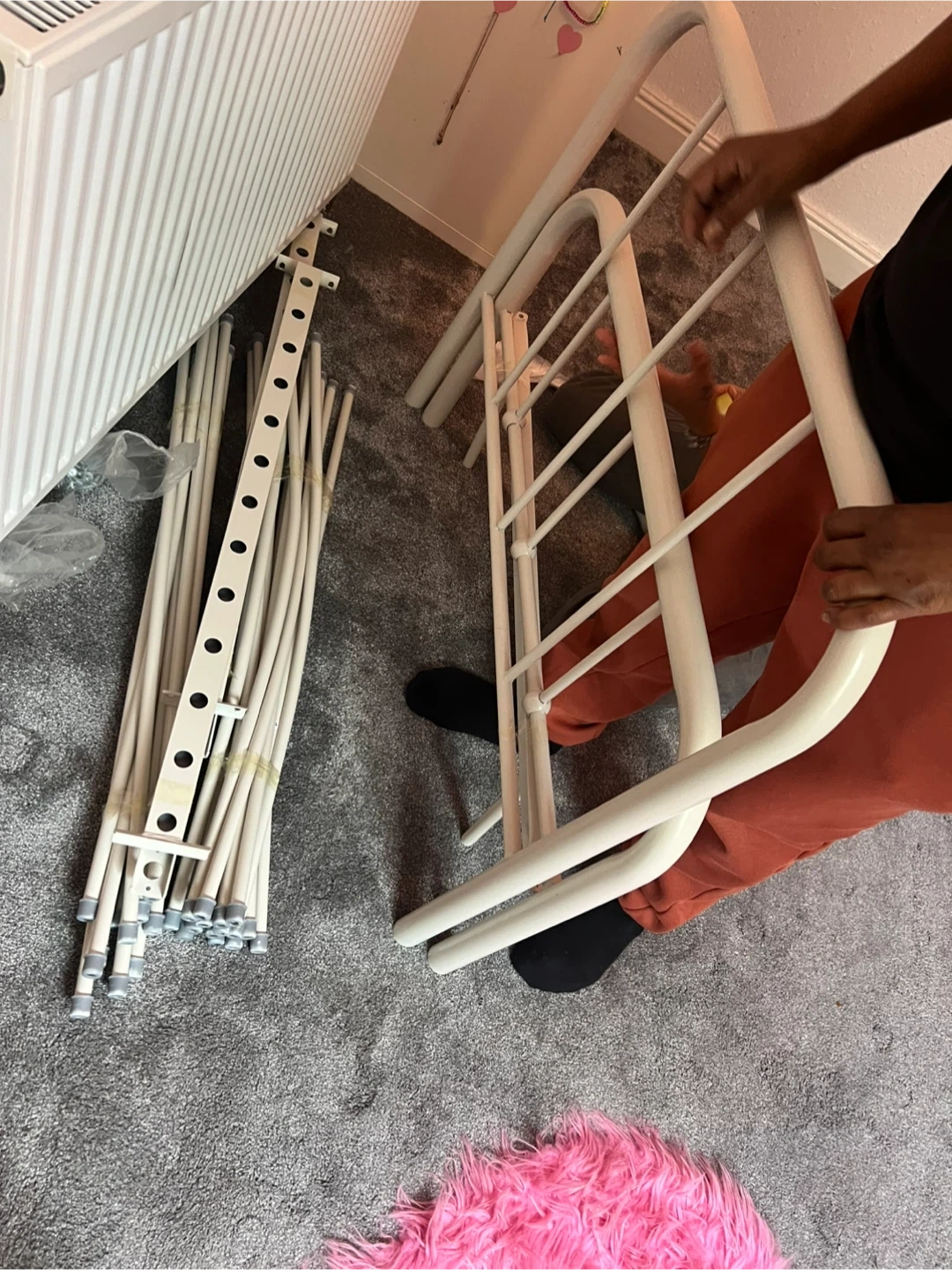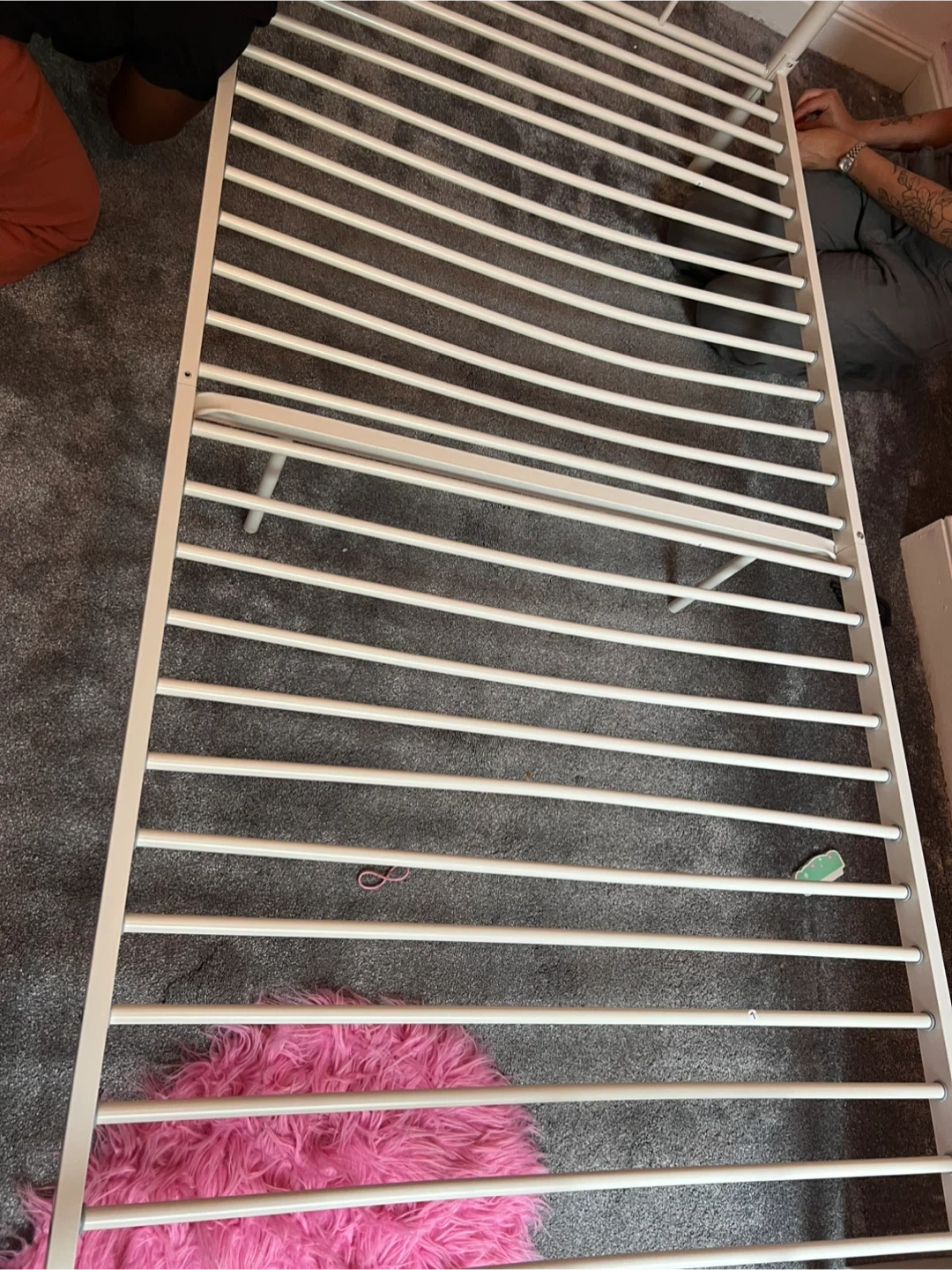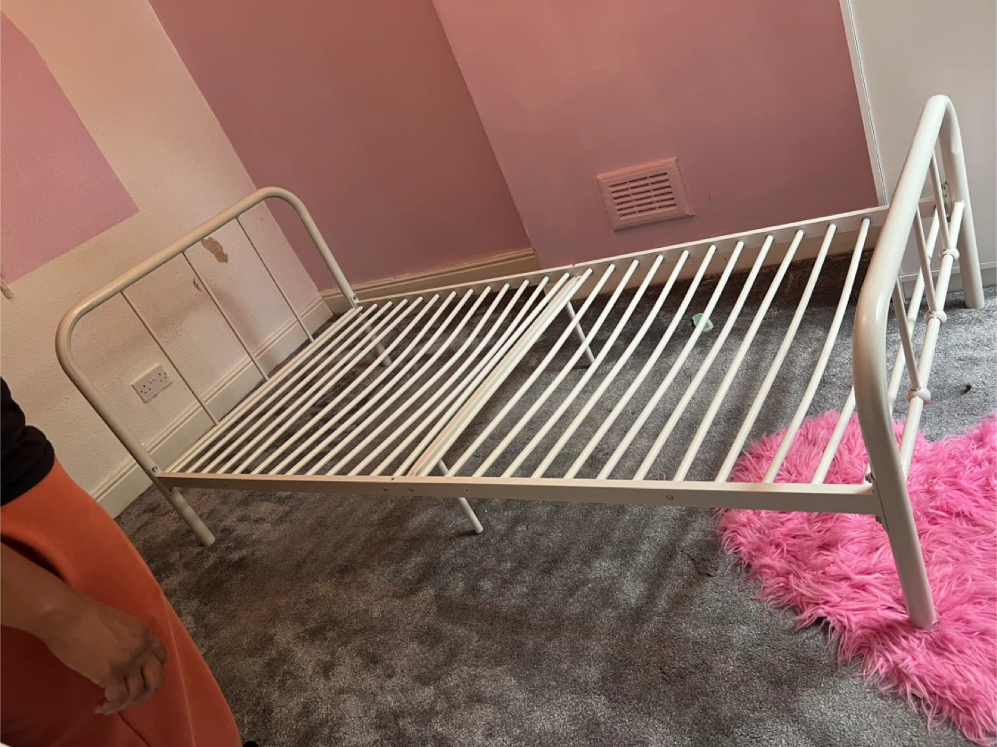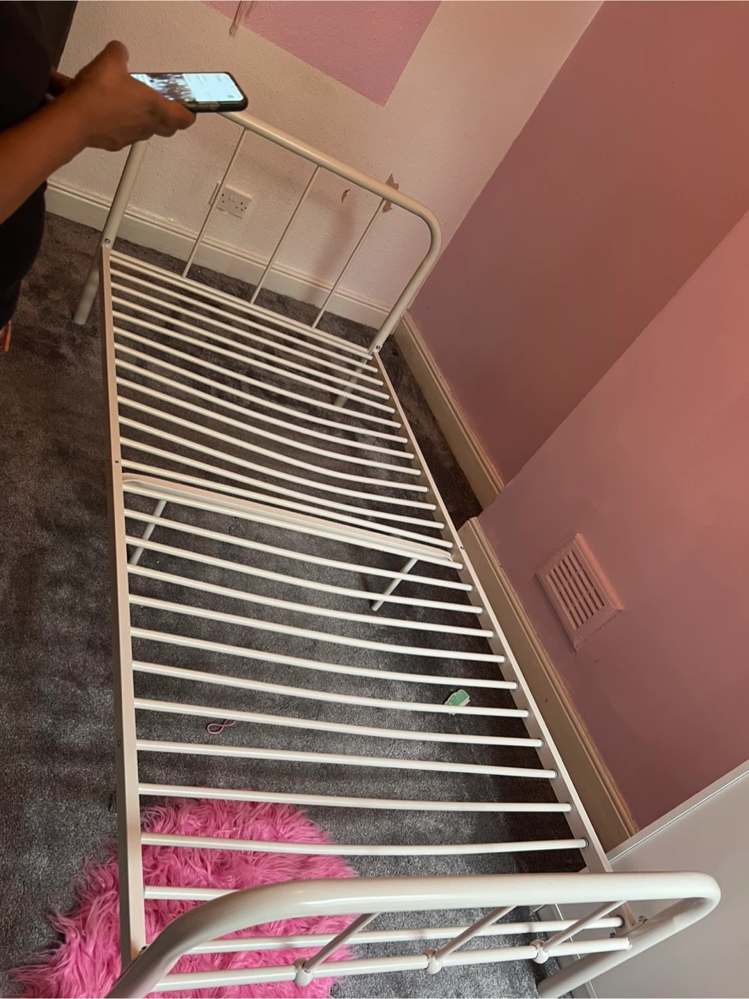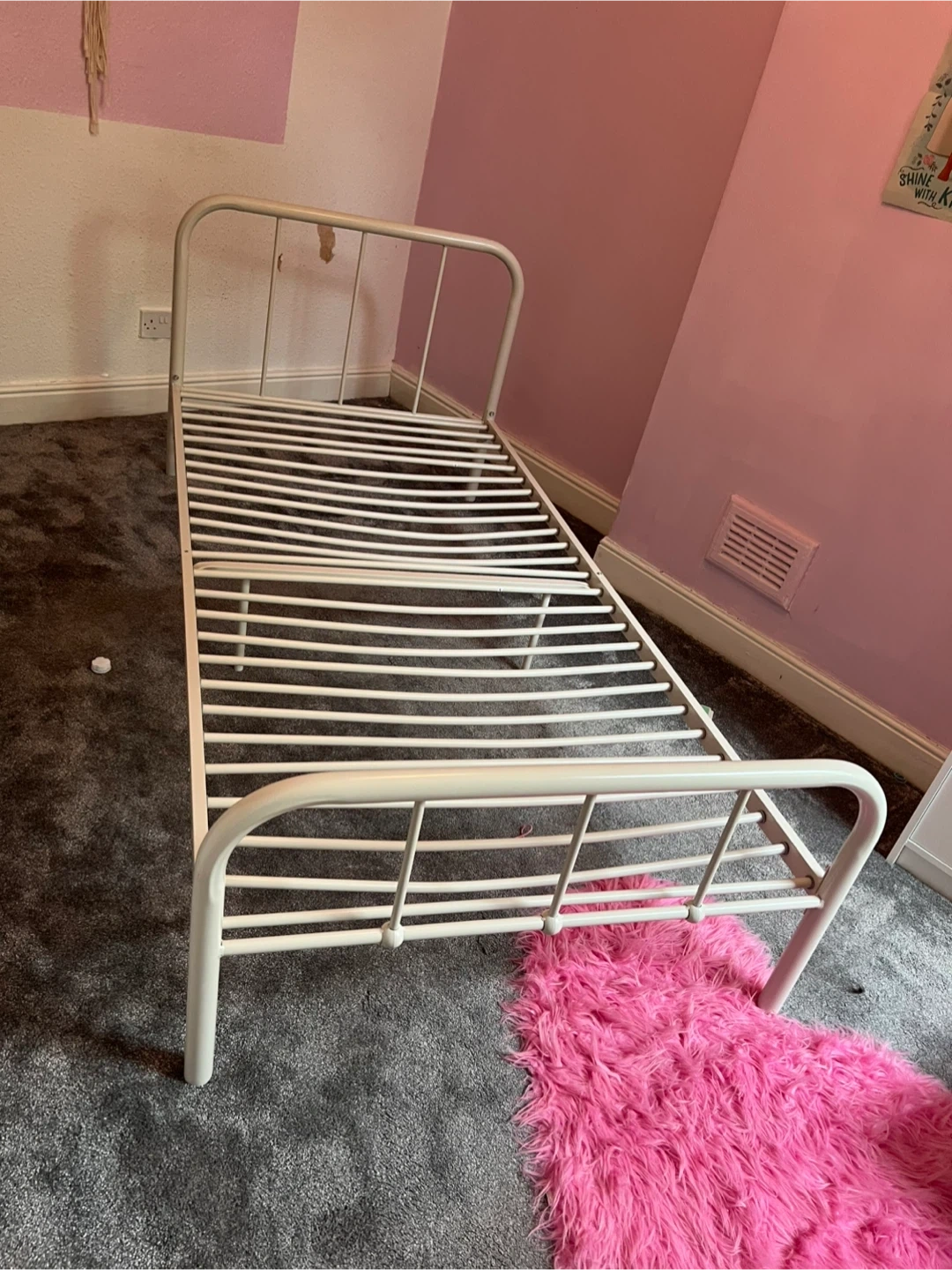 13 reviewsSelling a white metal bed frame. It's in good condition and ready for a new home. Perfect for a child's room or a guest room. It's sturdy and easy to assemble. Selling a (white metal white metal bed frame without mattress )It's in good condition and ready for a new home. Perfect for a child's room or a guest room no damage from a non smoker home Selling this single bed without mattress. Collection from b12