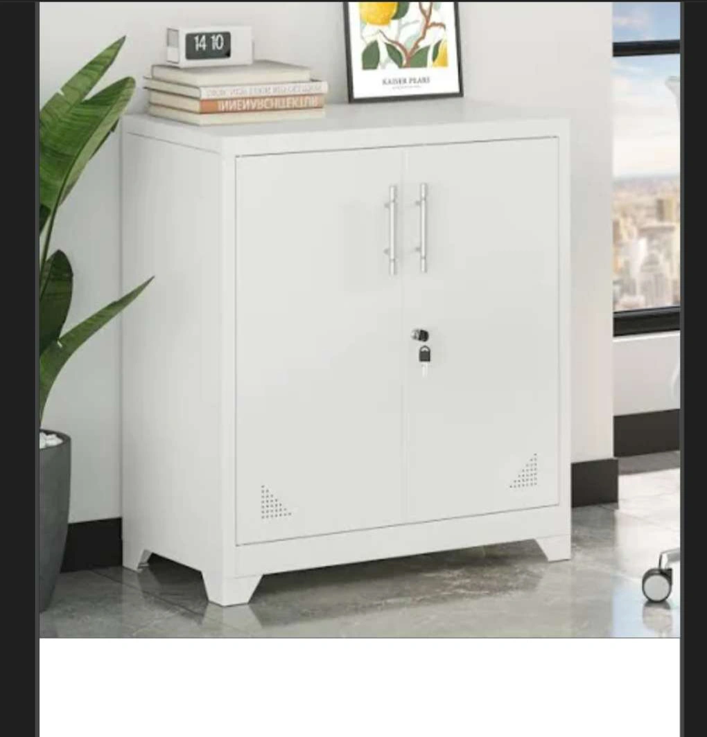 2 reviewsA handy white metal storage cabinet, perfect for decluttering your space! It features two doors, a lock and key, and a simple, clean design that will fit in with most decor. Ideal for home or office use
