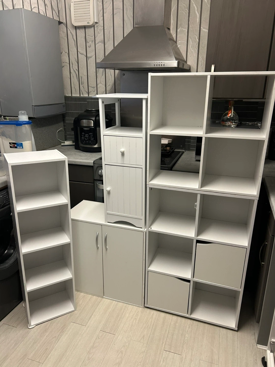 17 reviewsSelling a collection of white storage units. There are various sizes and configurations available, perfect for organising your home. They're in good condition and ready for a new home.