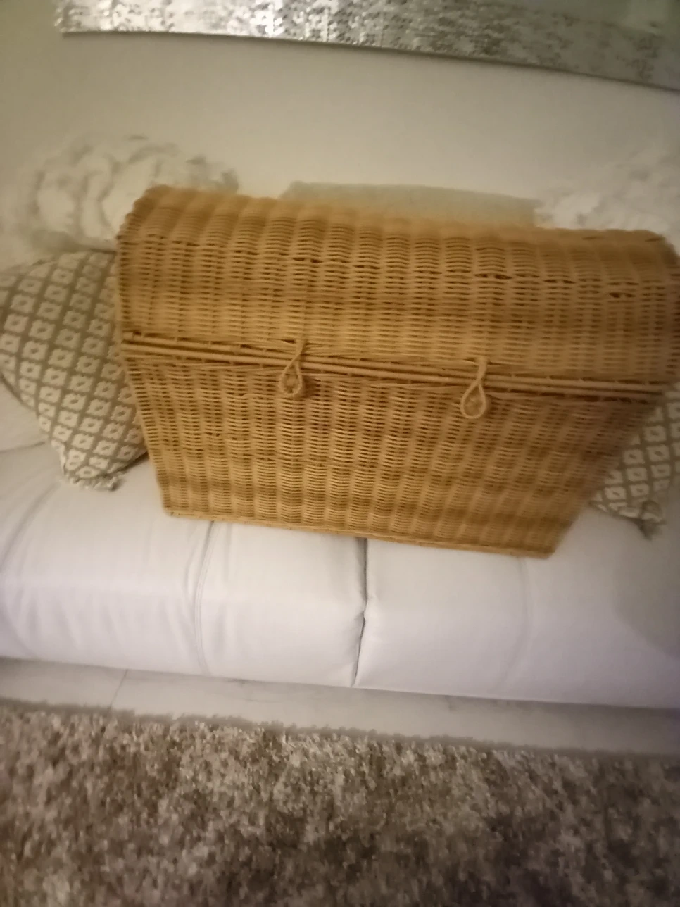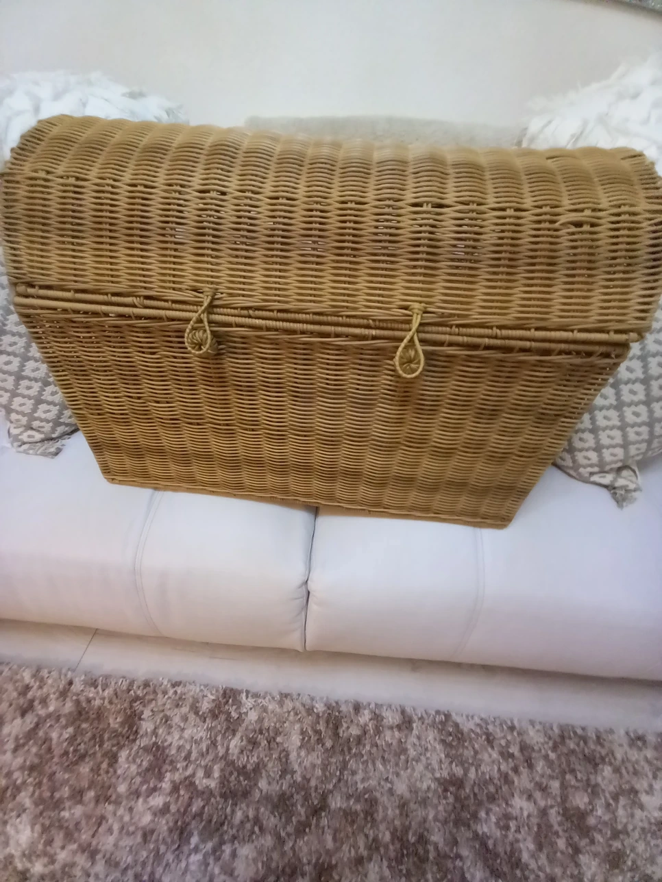 2 reviewsLovely wicker storage chest brand new measures depth 350mm,height 450mm and width 650mm it has a rounded lid ,and can be secured by 2 loops and buttons, finished with handles for easy lifting from smoke and pet free home collection only from boldmere I paid £50 but will sell today for £40 please no offers