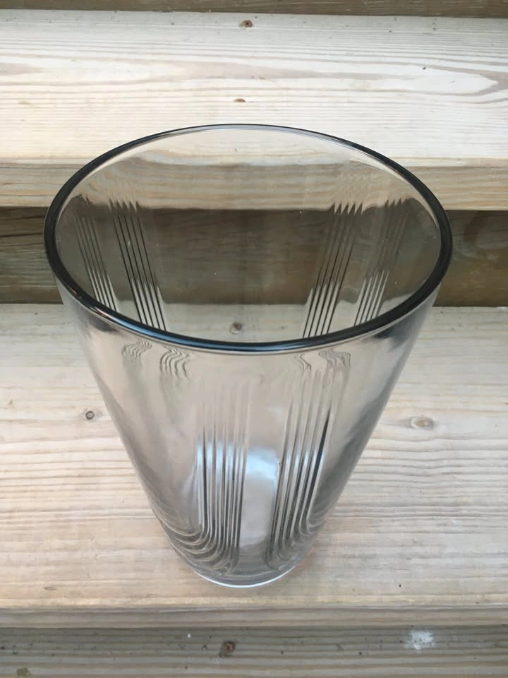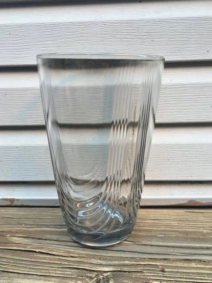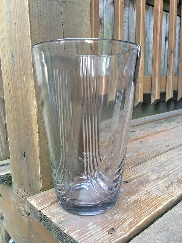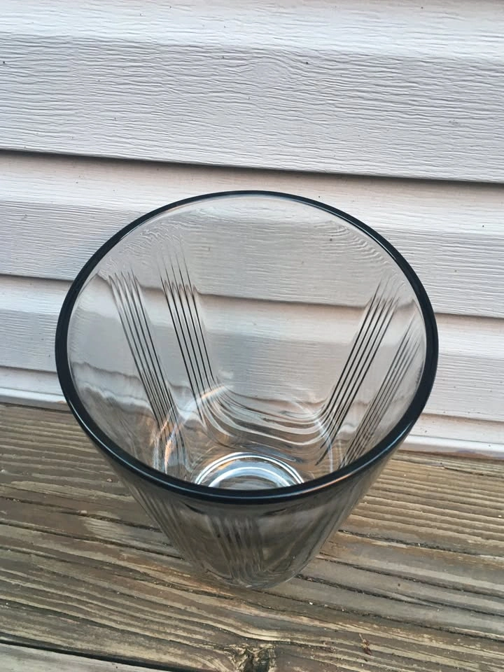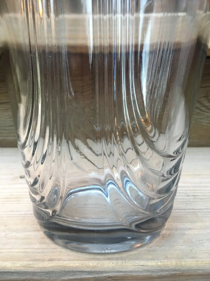 Beautiful 1/4” thick vase measures 10” tall, 6.5” top diameter and 4” base diameter. Exterior has three large U-shaped ridges. Base is 5/8” thick solid glass. Classic design works with any decor. From a smoke and pet free home. Check out in person before purchasing. Thanks for looking.