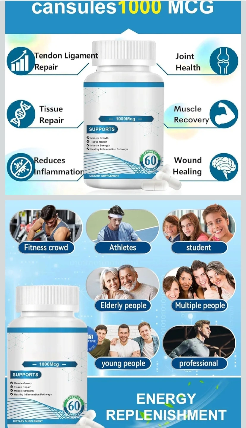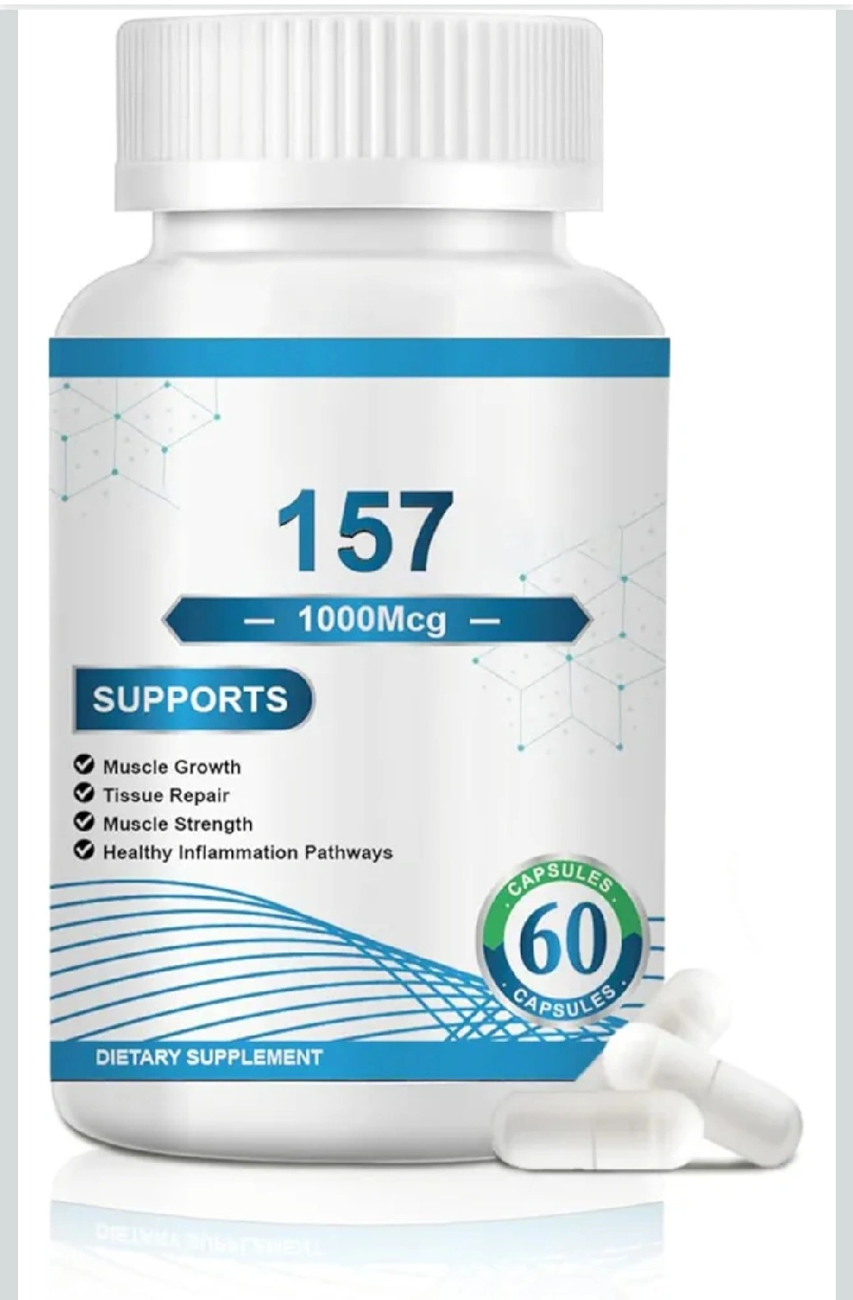 I'm selling a bottle of capsules that supports muscle growth, tissue repair, muscle strength, and healthy inflammation pathways. It contains 60 capsules and is a dietary supplement, perfect for anyone looking to support their overall health and well-being