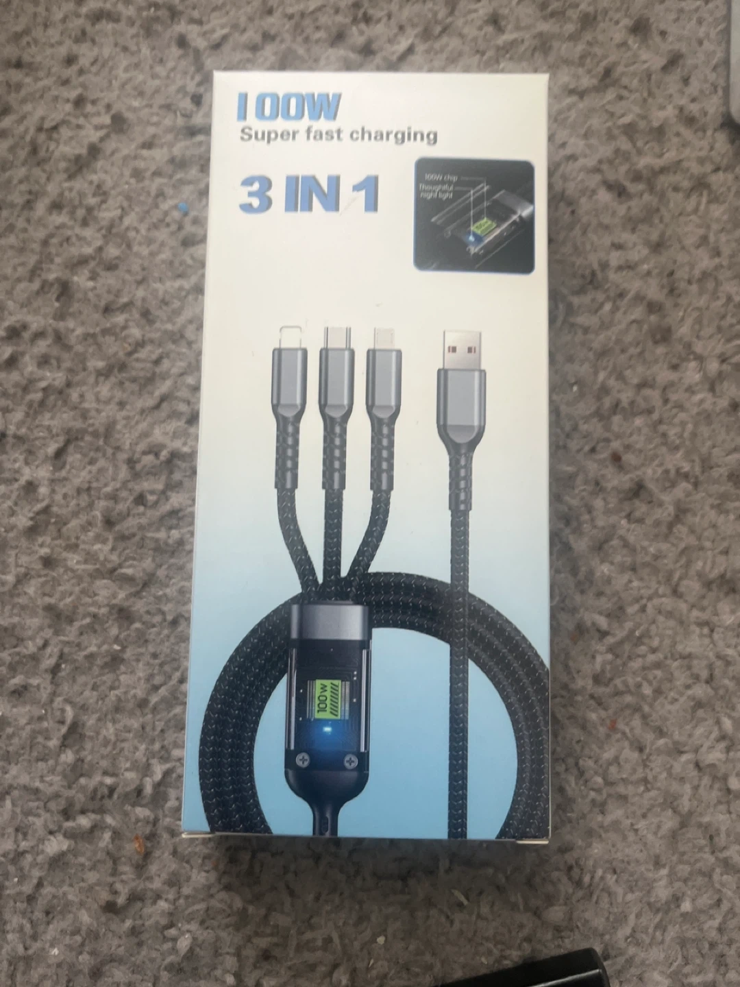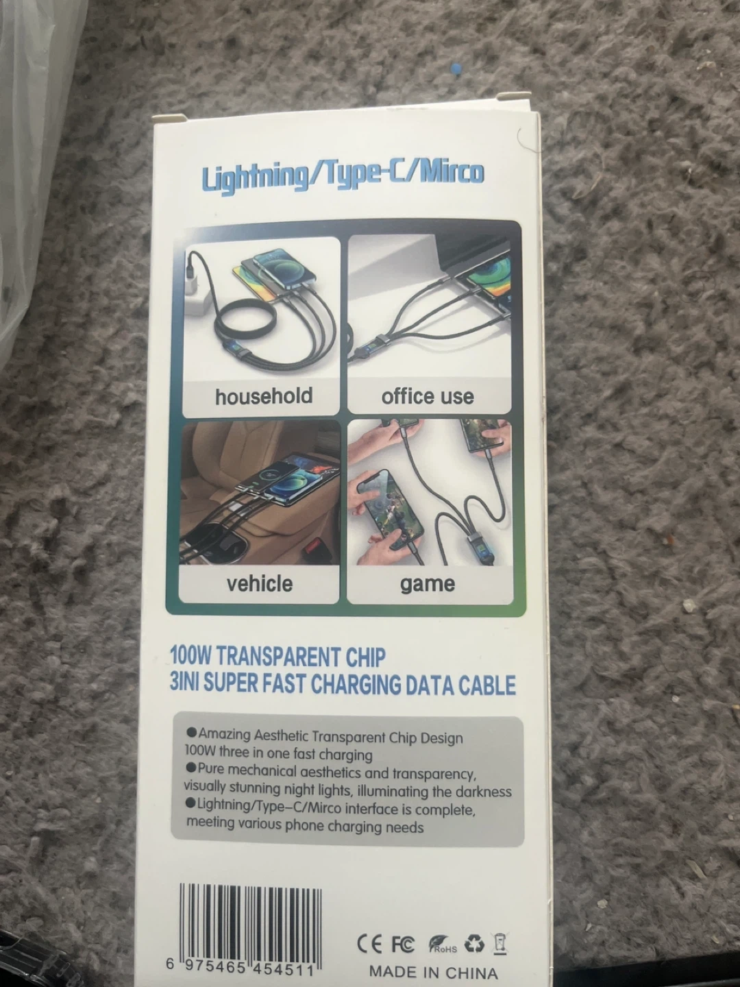 25Selling a 100W transparent chip 3-in-1 super fast charging data cable! It features an amazing aesthetic transparent chip design and pure mechanical aesthetics and transparency, visually stunning night lights, illuminating the darkness. The Lightning/Type-C/Mirco interface is complete, meeting various phone charging needs