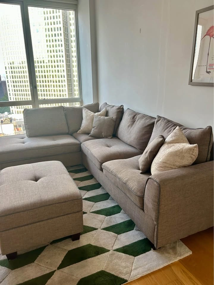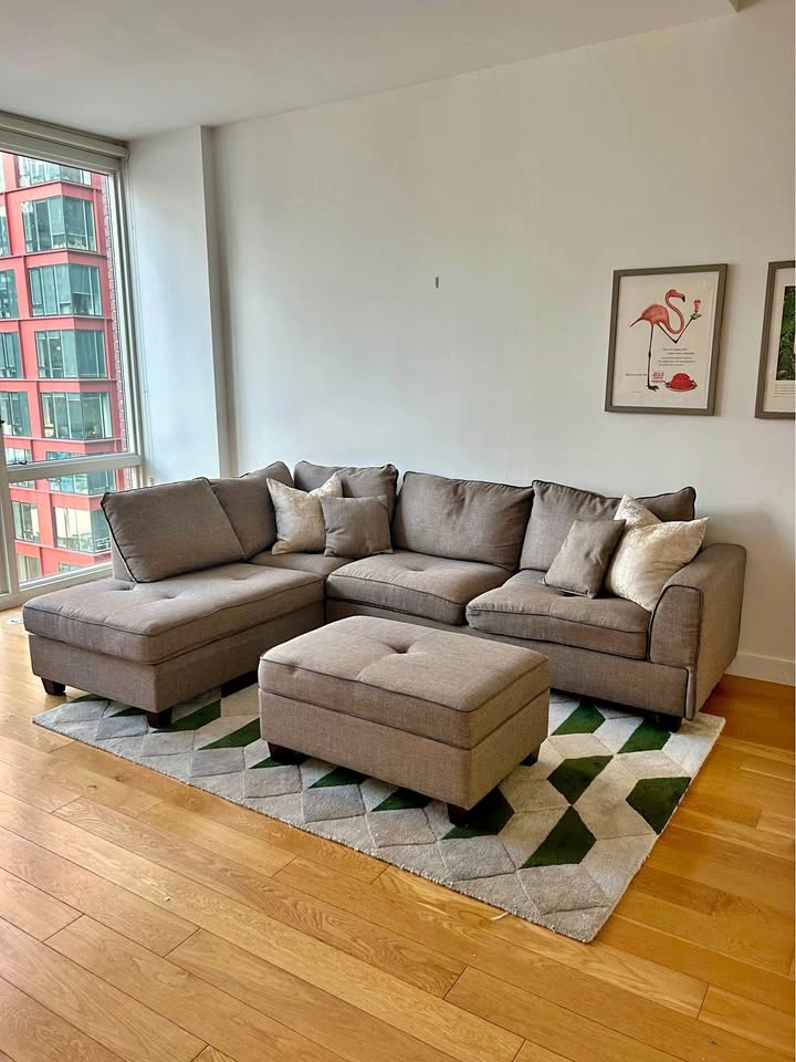 L shaped sofa, used for ~3 years. Comes from a home with a cat and has minor scratches. Pick up in an elevator building in downtown Brooklyn by 9/28 https://www.wayfair.com/furniture/pdp/sand-stable-105-wide-reversible-sofa-chaise-with-ottoman-w006961471.html?piid=167764283&_rsc=wdw9c