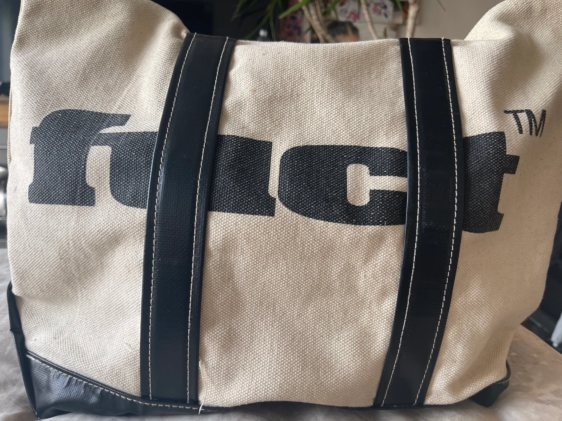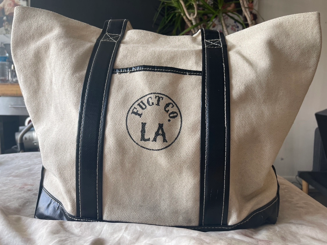 FUCT BRAND 100% AUTHENTIC PURCHASED DIRECTLY FROM FUCT WEBSITE HEAVY DUTY CANCAS TOTE BAG MEDIUM-LARGE FAUX LEATHER HANDLES & BOTTOM