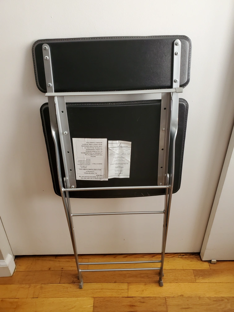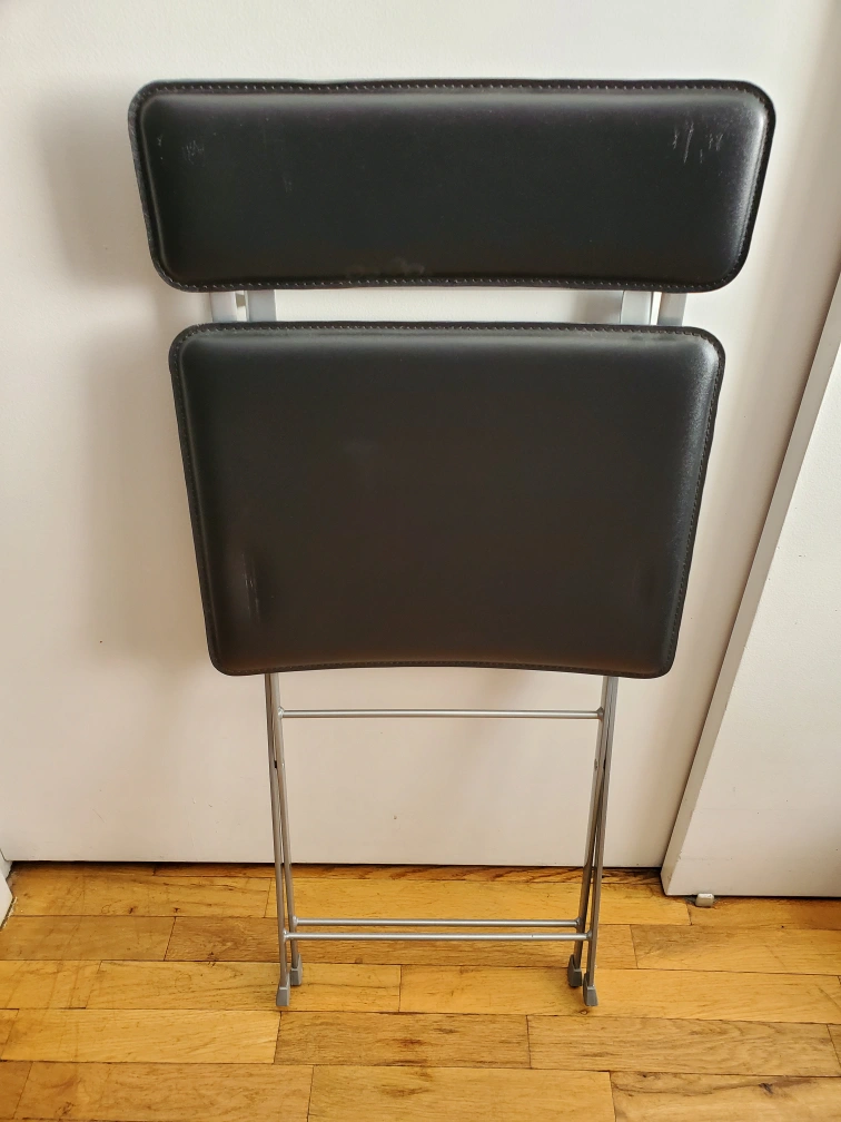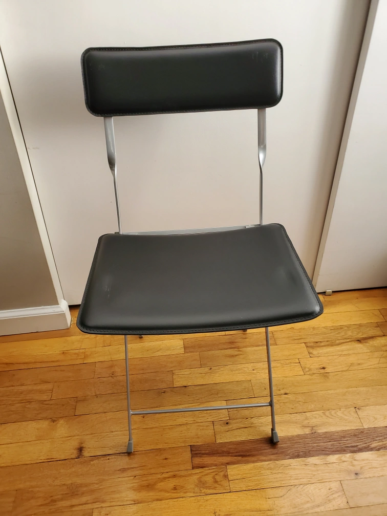Black folding chair from Design Within Reach steel metal frame. The chair is in good condition and is ready to be enjoyed. Seat height 17.5 inches. I have 4 chairs. Willing to sell all four or as a pair only.