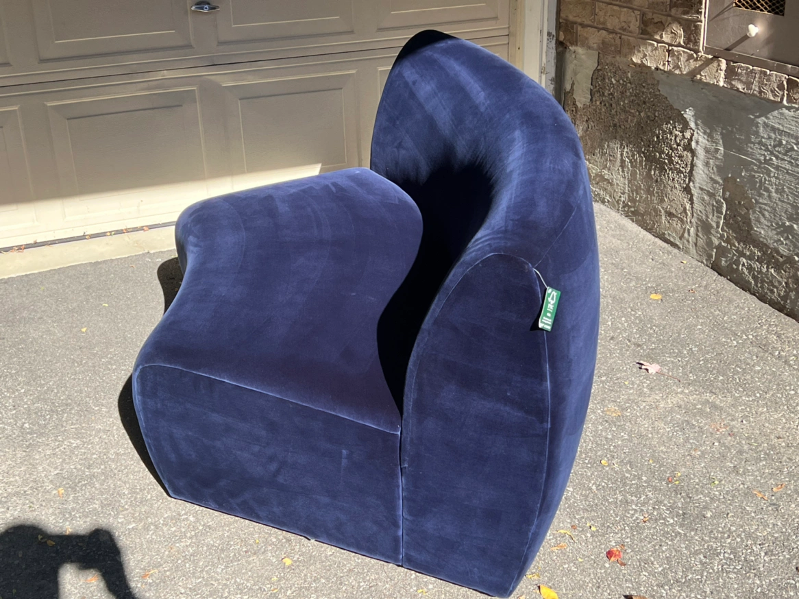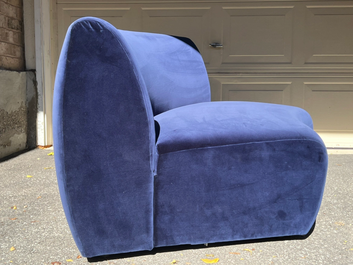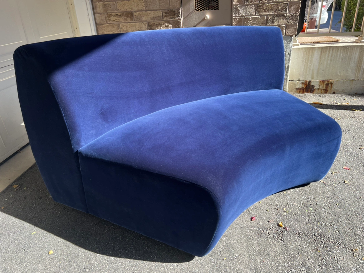 Eccentric style blue velvet love-seat by CB2.
