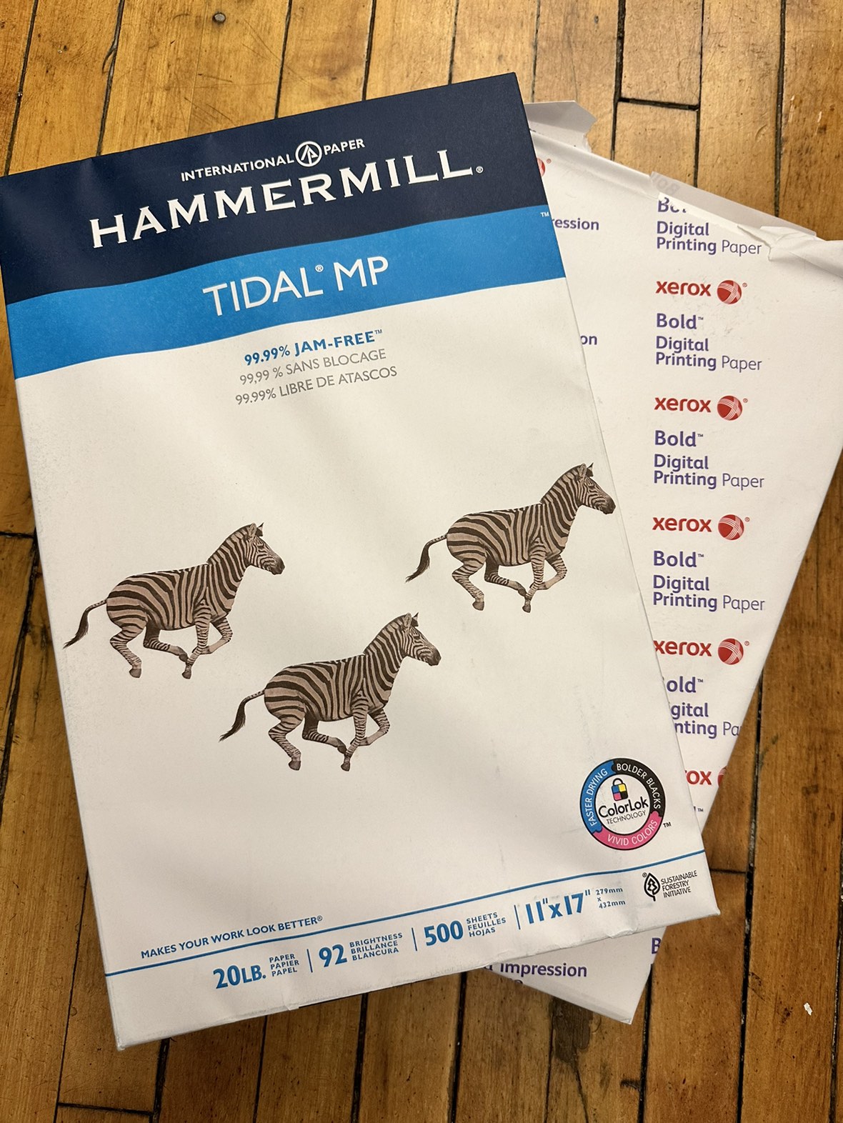 6 Reams of 11x17 paper for tabloid printer or copier. Hammermill, Xerox and Staples brand. Pick up only in Manhattan (Chelsea/Flatiron area).