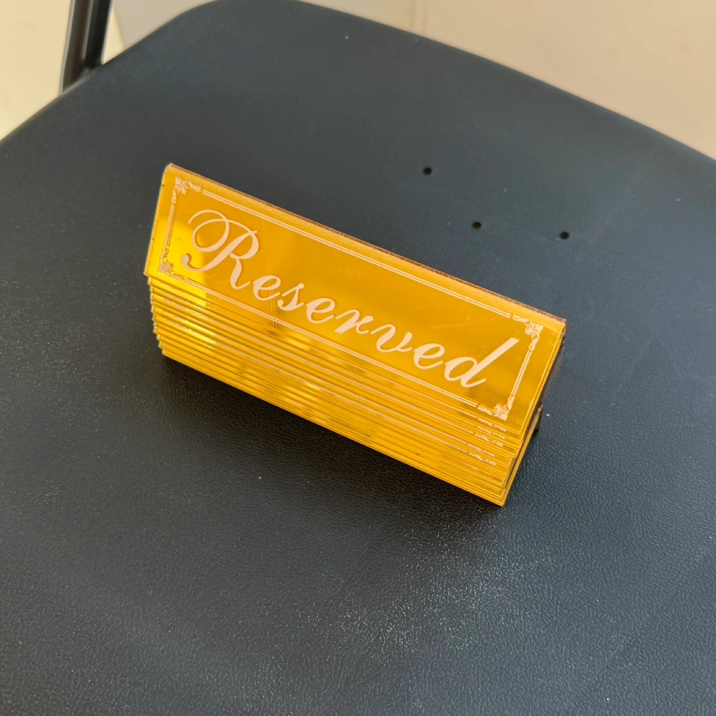 478Selling 12 gold 'Reserved' table signs. Perfect for events, restaurants, or adding a touch of elegance to your table setting!