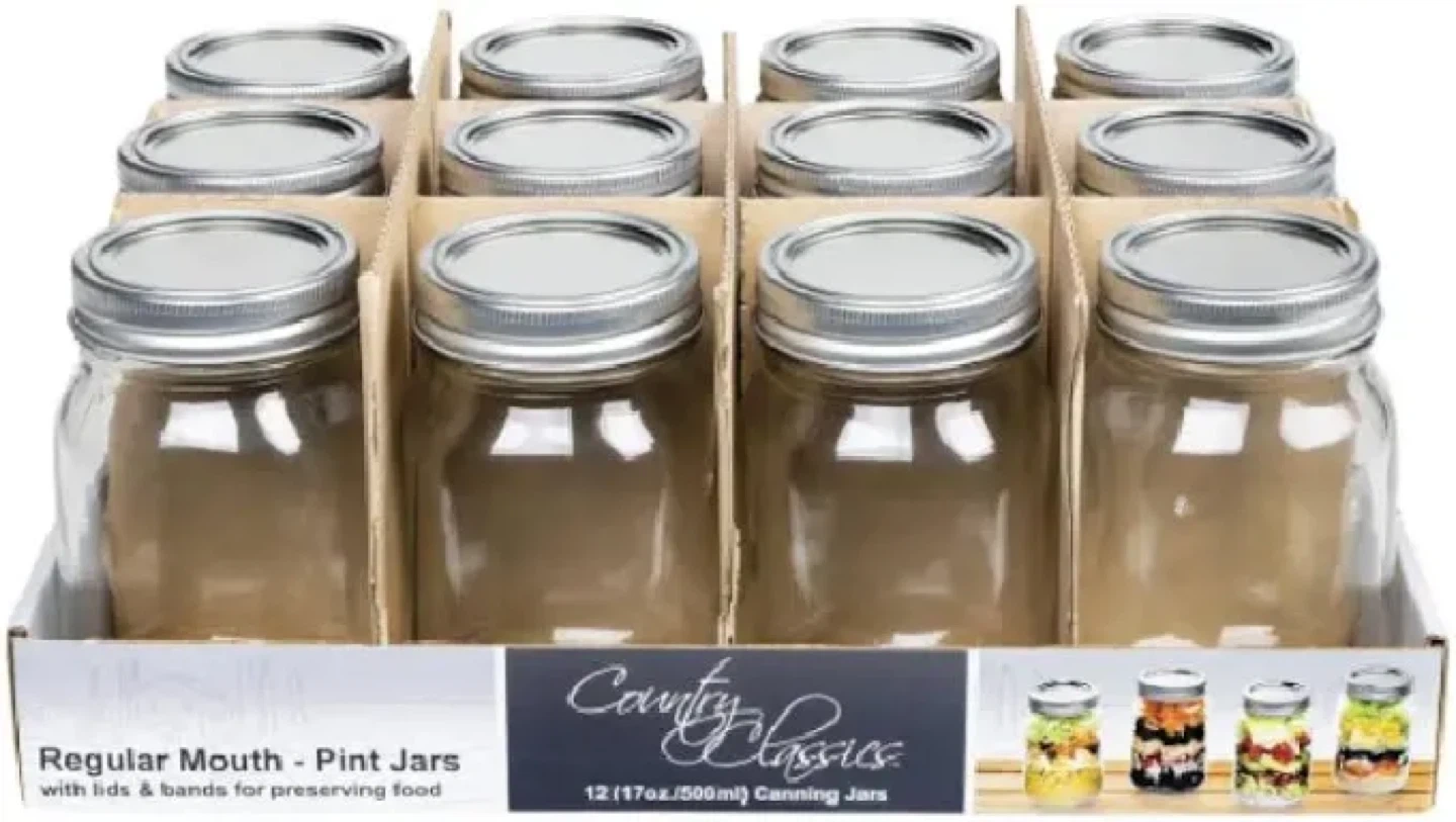 NEW Canning Jar This 12 oz glass jar is perfect for jams, pickles, sauces, or any homemade favorite. Its regular mouth design is great for easy pouring and secure sealing. Comes with a lid and band, durable and reusable, and dishwasher safe for easy cleanup. I have 10 dozen available. Great for: • Preserving fruits, vegetables, and homemade sauces • Pantry and kitchen storage • Crafts, gifts, or decorative use