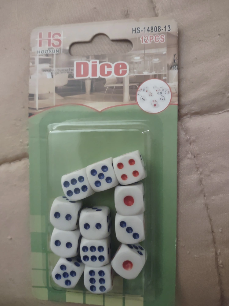 54White dice with blue and red dots. 12 pieces in a pack. Never opened.