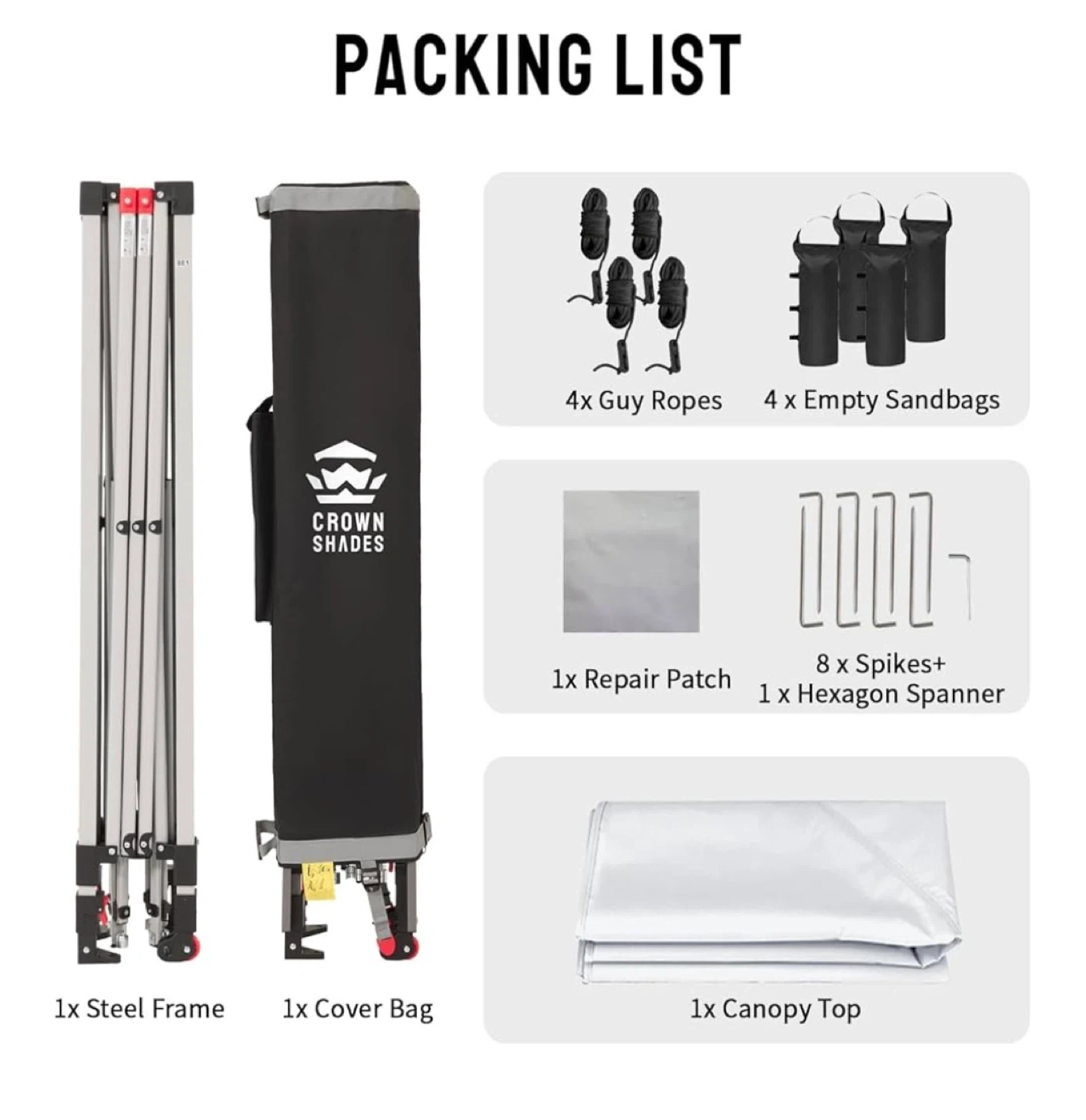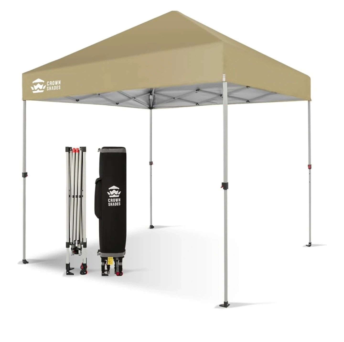 21New in the box - CROWN SHADES 12x12 Beige Pop Up Outside Canopy, Patented One Push Tent Canopy with Wheeled Carry Bag, Bonus 8 Stakes and 4 Ropes.