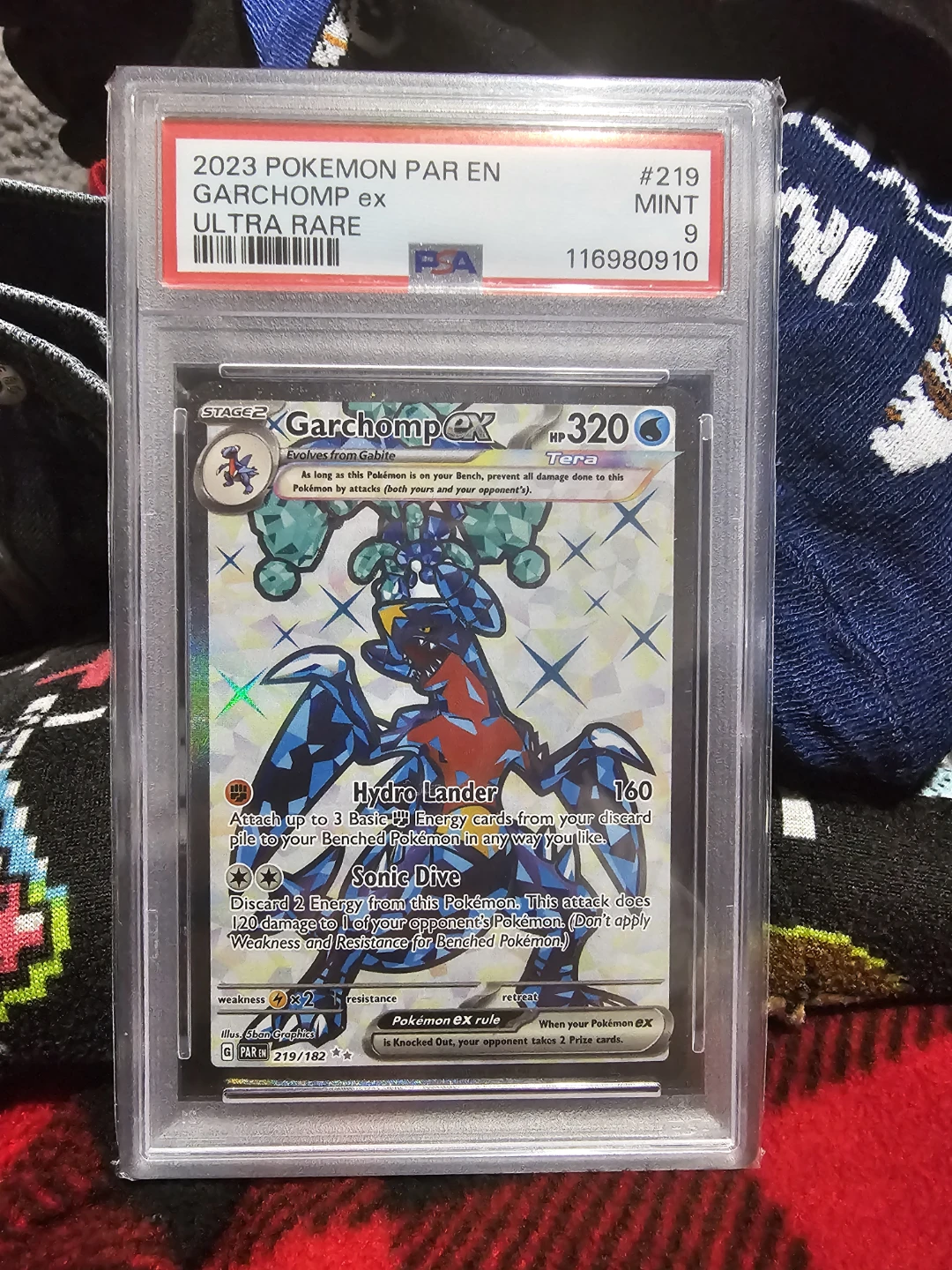 PSA 9 Garchomp ex #219 – Paradox Rift Ultra Rare (2023)