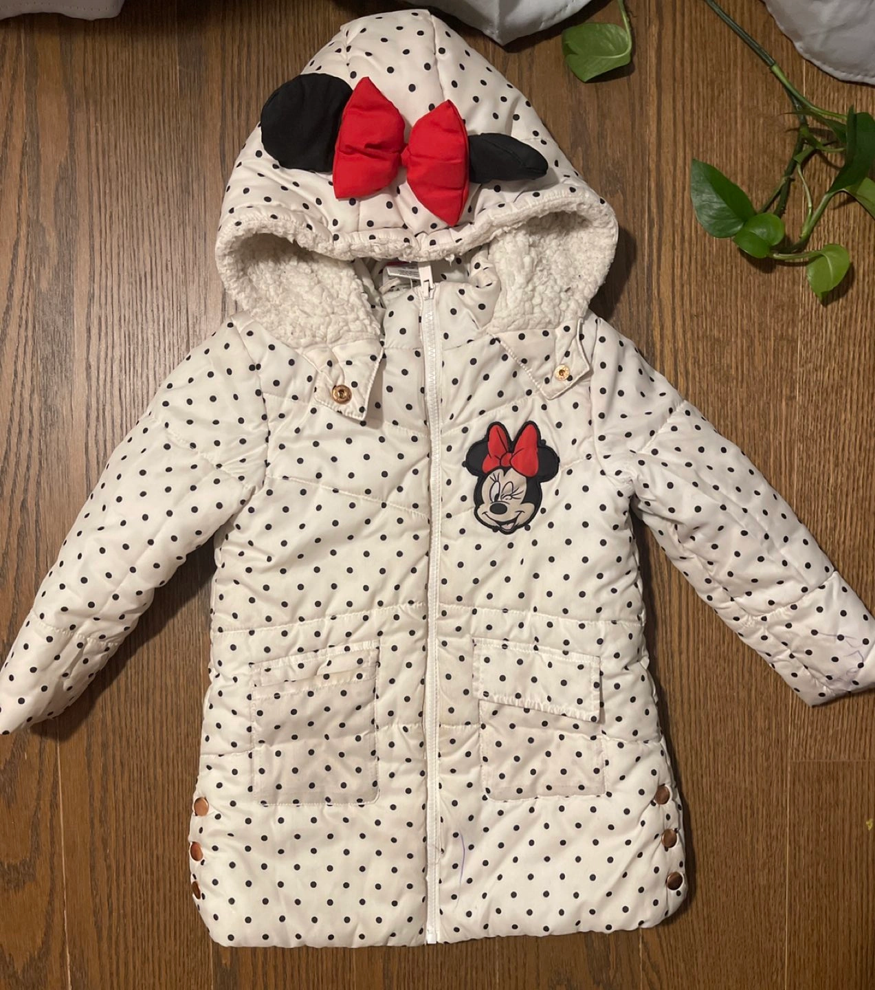 Disney Junior Minnie Coat Polka Dots with Minnie Mouse Red Bow on hoody Pre owned Offers welcome