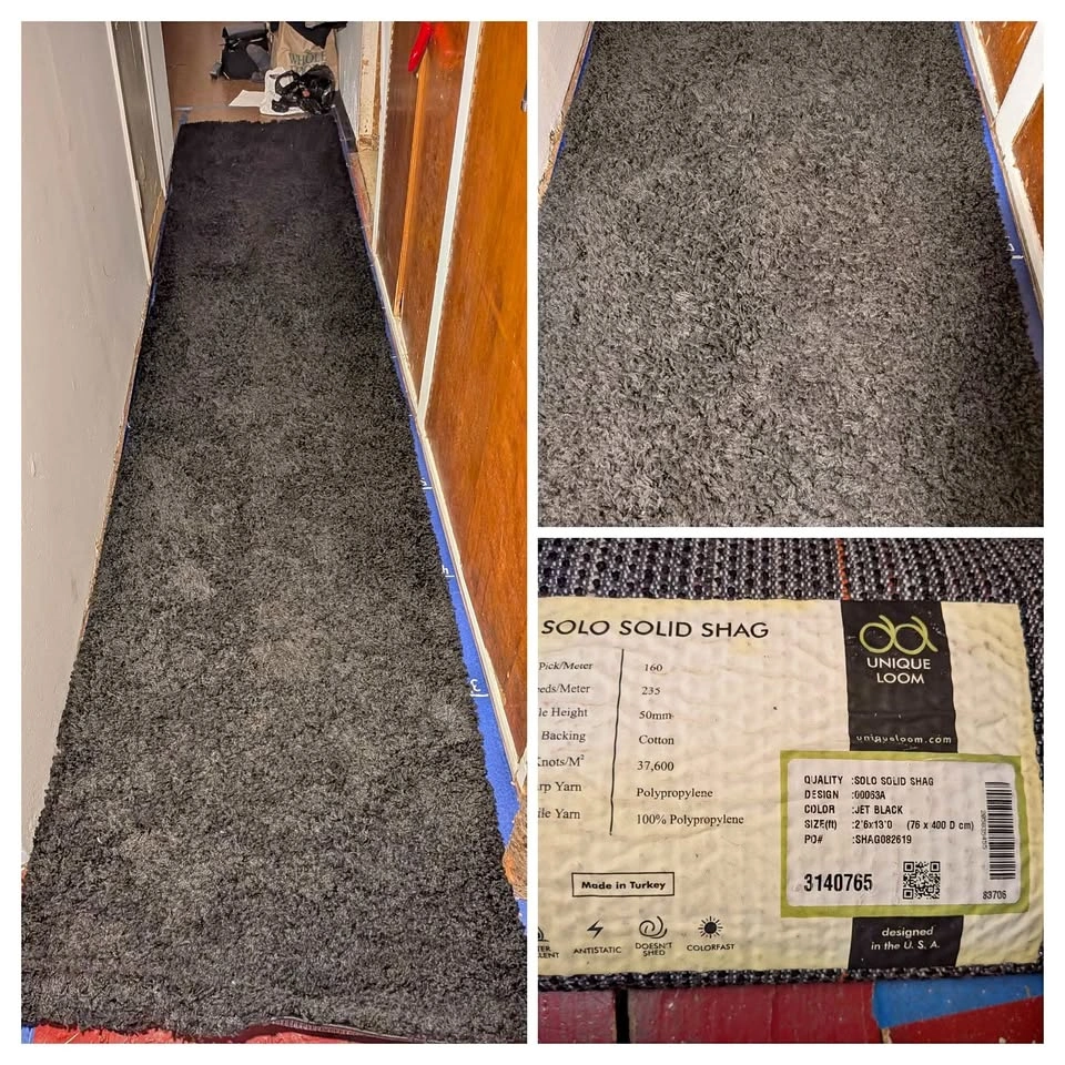 10Brand: unique loom Hard to tell in the photos but it can be difficult to vacuum. I just vacuumed it. Shampooed it once a while back. Haven't used it in a while. 2'6" wide 13ft long