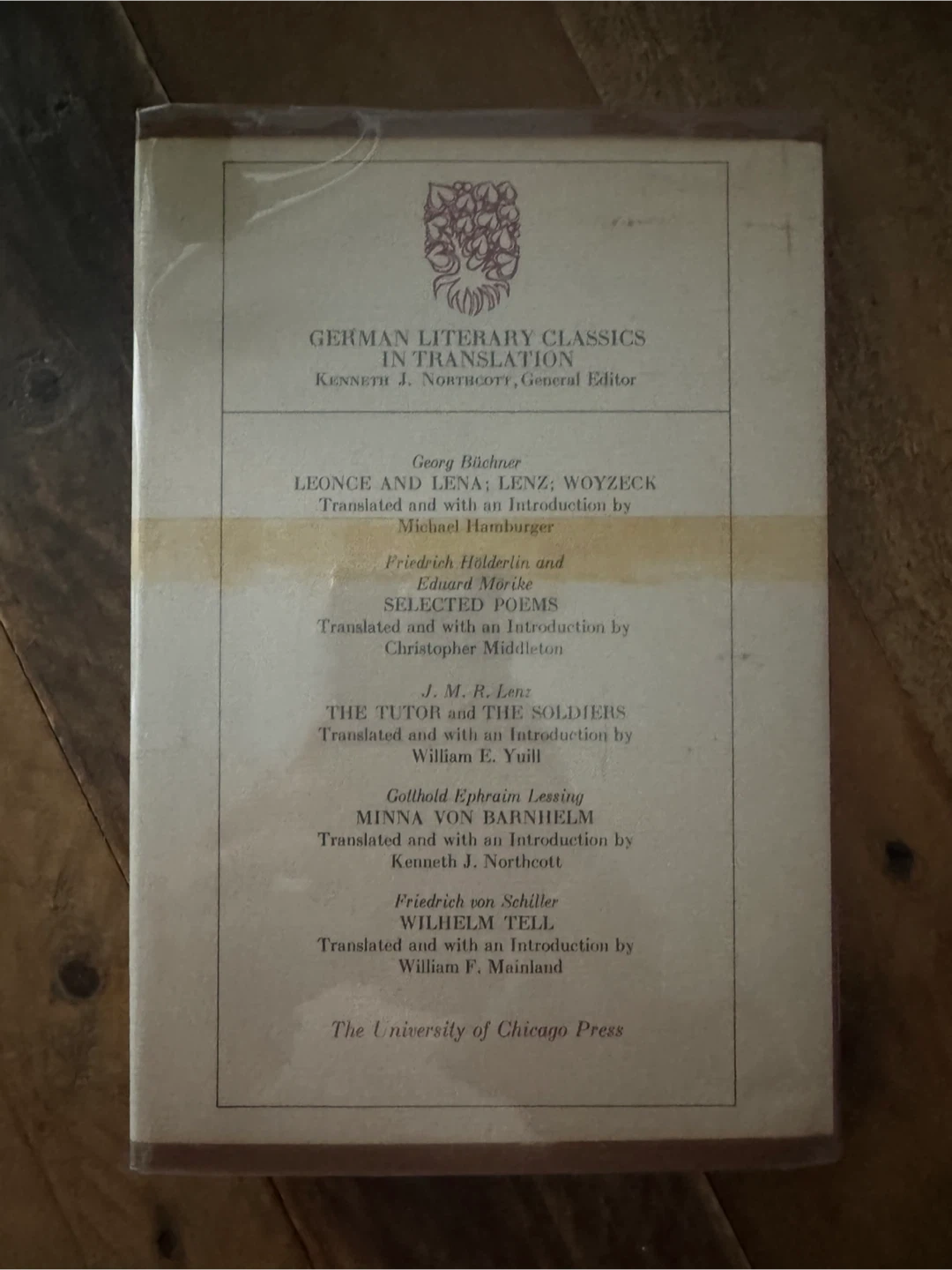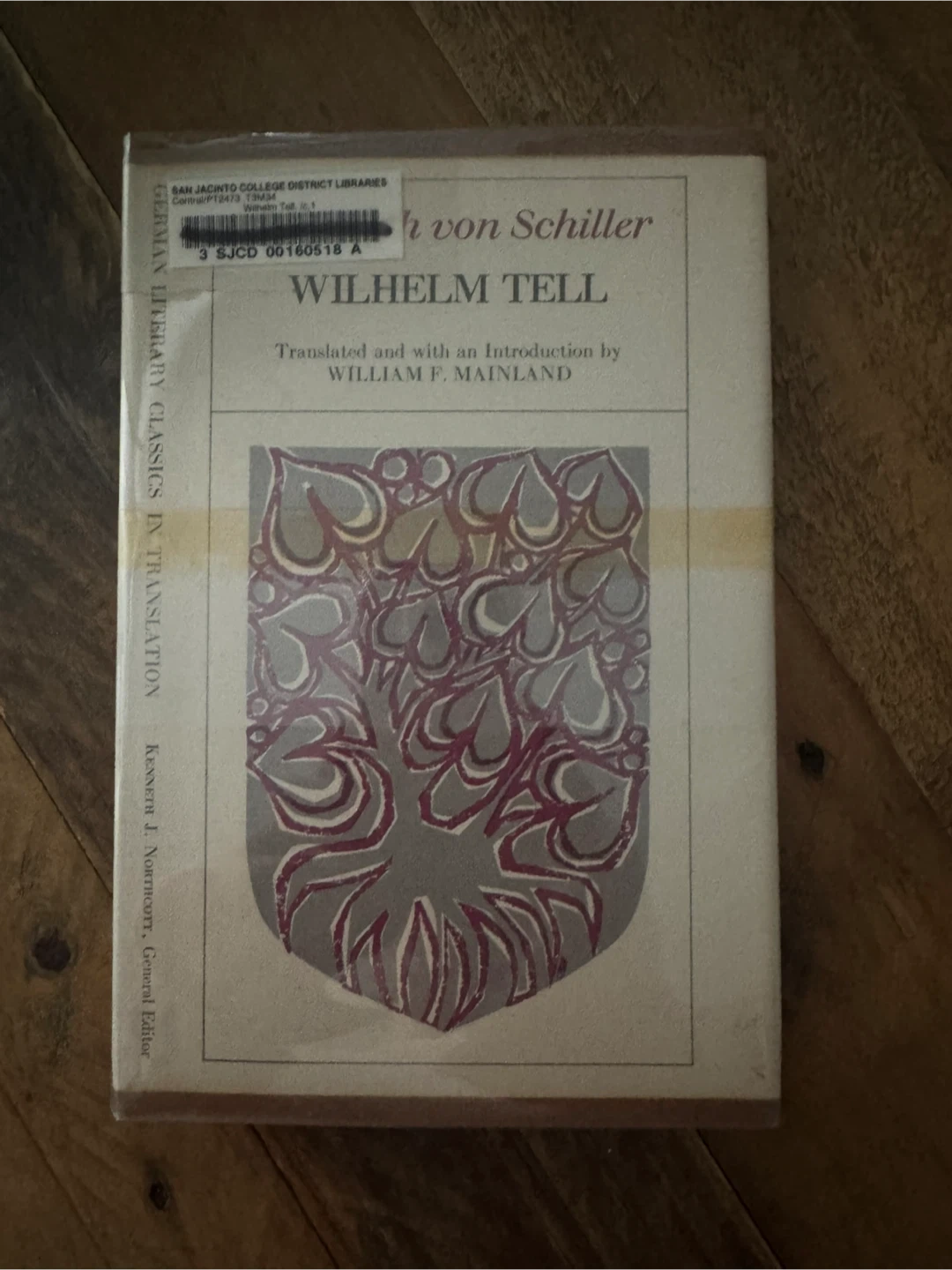 This is a copy of Wilhelm Tell by Friedrich von Schiller, translated and with an introduction by William F. Mainland. It's part of the German Literary Classics in Translation series, edited by Kenneth J. Northcott. The University of Chicago Press.