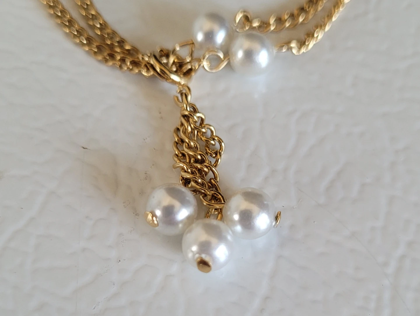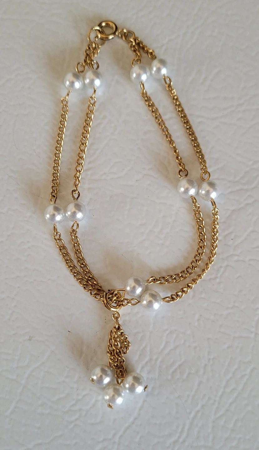 ♥️Fashion Faux Pearl Goldtone Vintage Bracelet . No discoloration and in perfect condition. My guess it could be Avon.