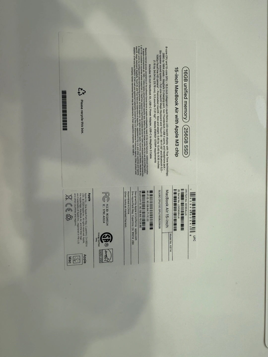 New, unopened MacBook Air. 15-inch screen, 256GB SSD, 8GB unified memory. M2 chip. In original box.