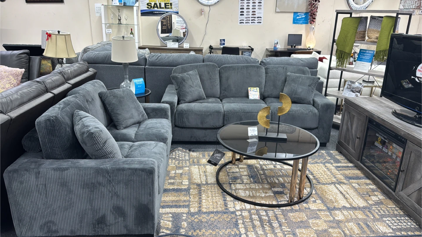 Gray Corduroy sofa and loveseat