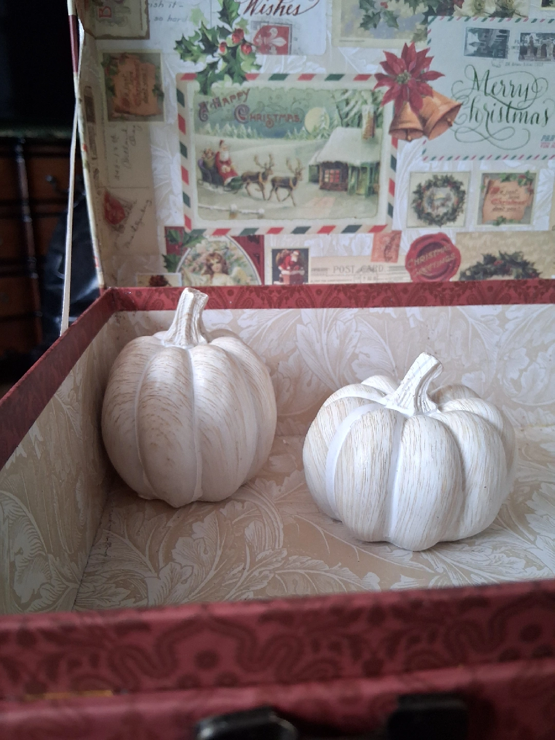I'm selling a set of two decorative white pumpkins. They are in great condition. These pumpkins are perfect for adding a touch of autumn charm to your home decor
